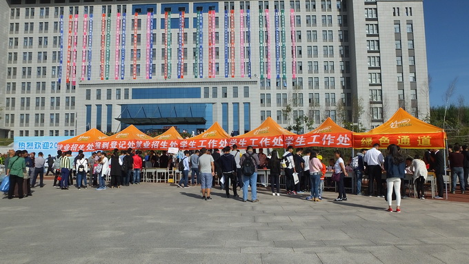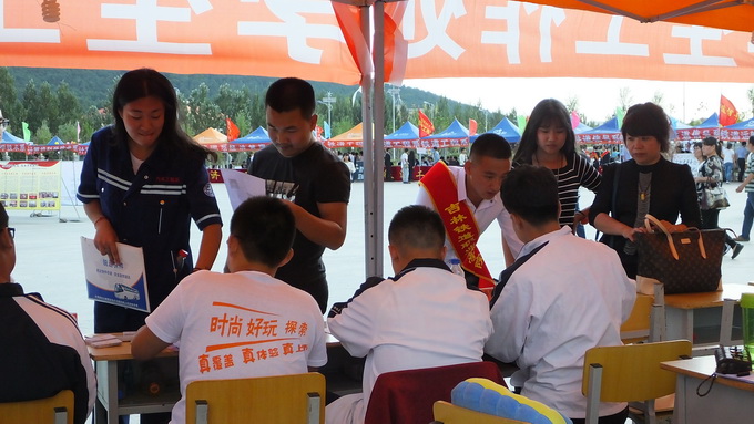 在吉林站东出口,学院设置了新生接待处,在学院团委的组织下,每天早上6:00志愿者们就来到火车站,迎接来自全国各地的新生,带领他们乘座上学院的接站车。在校门口,设咨询服务区和家长休息区,每名新生和家长都能够及时被引导到各系接待区,辅导员、班主任老师和志愿者更是全程指导,耐心解答每一个新生的疑惑和问题,帮助新生,引导新生,提供一站式服务。报到交录取通知书、打印报到单、交费、注册领取进班卡、领取备品,手续简便,流程顺畅,方便快捷,特别是报到现场开设“绿色通道”,先后为337名家庭经济困难学生办理了生源地助学贷款等手续,保证了他们及时入学。
