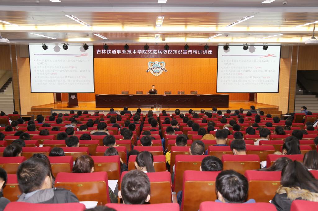 ,由后勤与资产管理处和学生工作处在学院图书馆报告厅共同组织举办了艾滋病防控知识宣传培训教育讲座。讲座由吉林市疾病控制中心副主任、艾滋病防控专家孙殿伟主任医师担任主讲人。活动还请到了吉林市卫计委疾病控制与预防中心翟强主任、吉林市红十字会王博副主任。学院党委副书记曹炳志以及各系党总支书记、系学办主任、系团委书记、辅导员老师及学生代表等共计400多人参加了本次培训活动。本次活动由后勤与资产管理处处长张兴志主持。