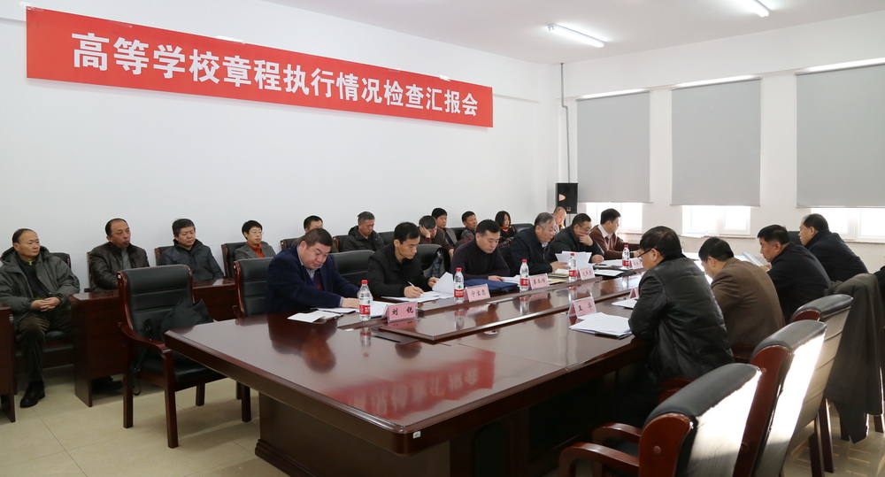 随后,省教育厅副巡视员史燕来同志、法规处处长姜本祥同志、省教育厅高校干部处正处长级组织员曲跃年同志与学院行政管理人员代表、学术委员会代表、普通教职工代表,围绕学院章程执行情况进行了座谈。省教育厅高等教育处副处长宁宝忠同志、高校思想政治工作处主任科员乔东升同志、法规处主任科员刘锐同志对学院建立的相关制度,党委会、院长办公会、学术委员会、教职工代表大会的会议记录及相关材料进行了查阅。