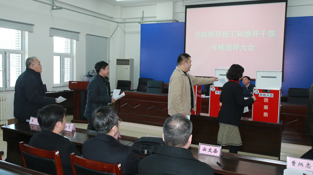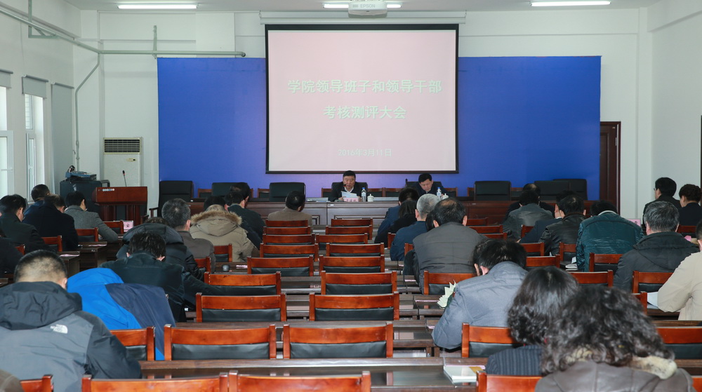 3 月11日 下午,学院领导班子和领导干部2015年度考核测评大会在办公楼五楼会议室召开。