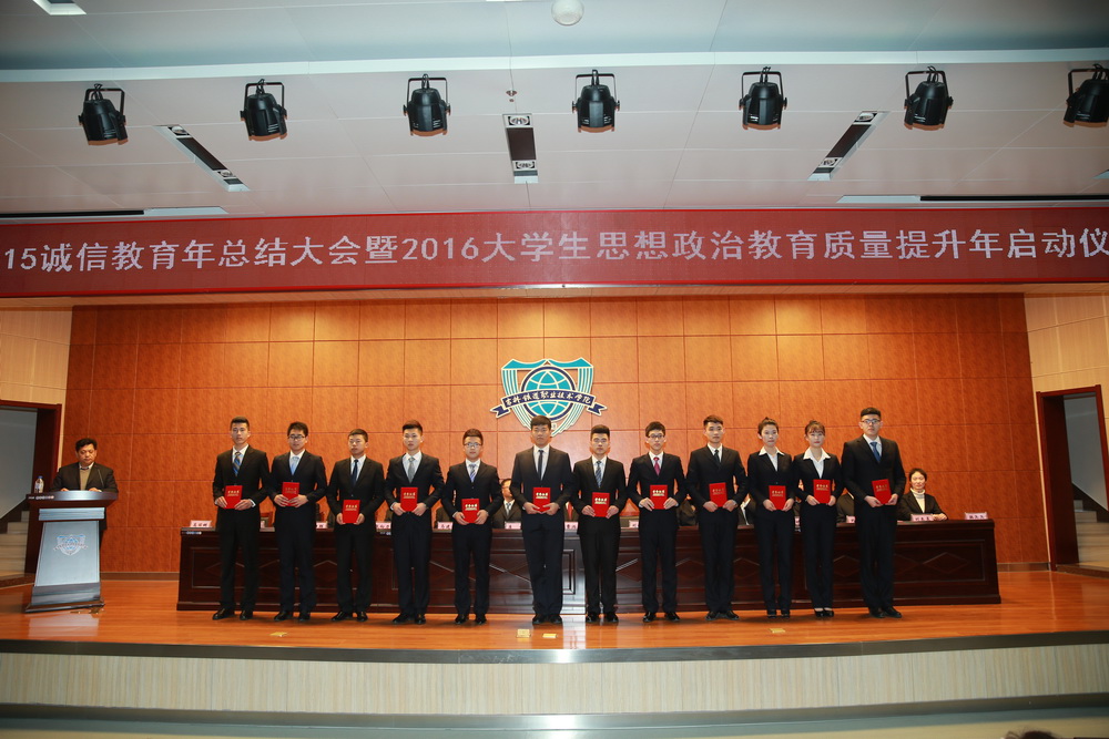 会上,学生处韩兵兵副处长代为传达了省教育厅关于我院被评为2015年吉林省大学生诚信档案建设先进集体的通知精神,学生处高丽娴副处长宣读了学院2015年诚信教育年先进集体和优秀个人表彰决定;经济管理系党总支书记刘本基代表受表彰的诚信教育先进单位发言;各系学办主任就开展2016年大学生思想政治教育质量提升年活动做了表态发言。为获奖的先进集体和优秀个人进行了颁奖。