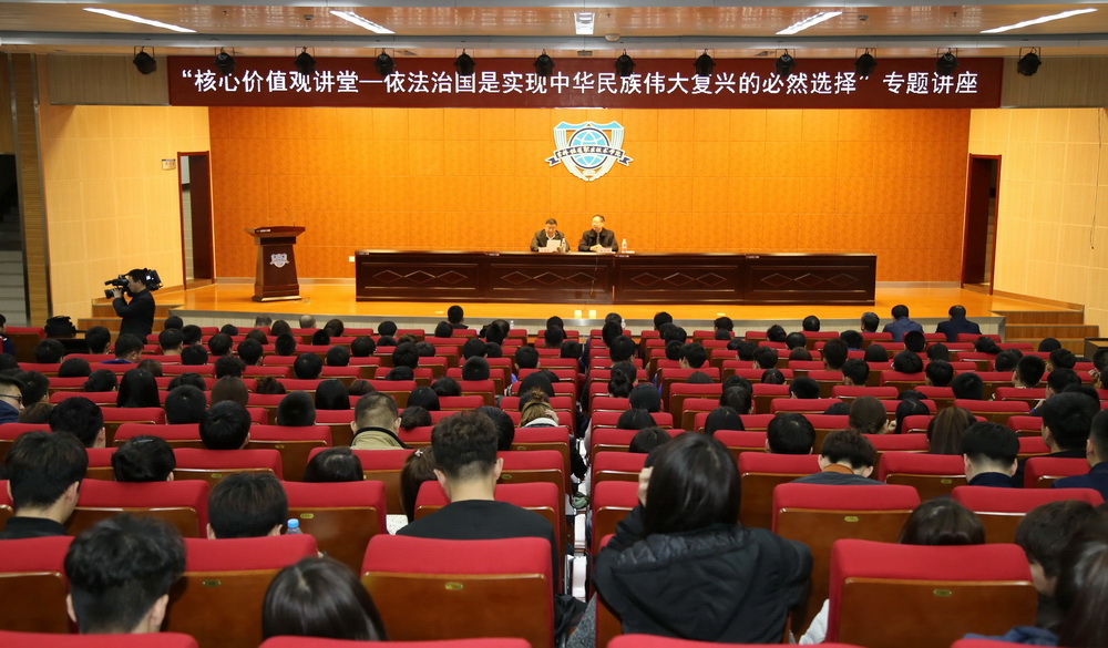 为深入学习习近平总书记系列重要讲话精神,贯彻中央关于加强和改进党的群团工作及进一步加强和改进新形势下高校宣传思想工作的指示要求,切实加强我院青年学生的思想引领,4月13日下午,由中共吉林市委宣传部、吉林市社科联和吉铁职院主办,吉林市社科联学会部和学院团委承办的“核心价值观讲堂——依法治国是实现中华民族伟大复兴的必然选择”专题讲座在学院图书馆报告厅举行。