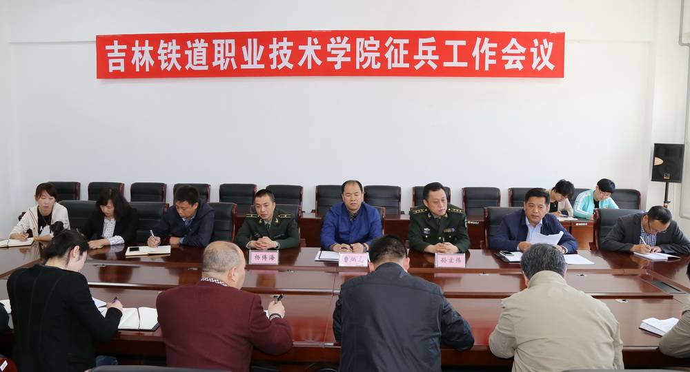 5月13日上午,我院在办公楼三楼会议室召开2016年征兵工作会议。院党委副书记曹炳志参加会议,永吉县人武部部长孙宏伟、参谋杨博海到会,学院学生工作处(武装部)、宣传统战部、教务处、就业招生处、财务处、安全保卫处、后勤与资产管理处等相关部门负责人及各系党总支书记、学办主任、分团委书记参加会议,会议由学院武装部部长、学生工作处处长刘树全主持。