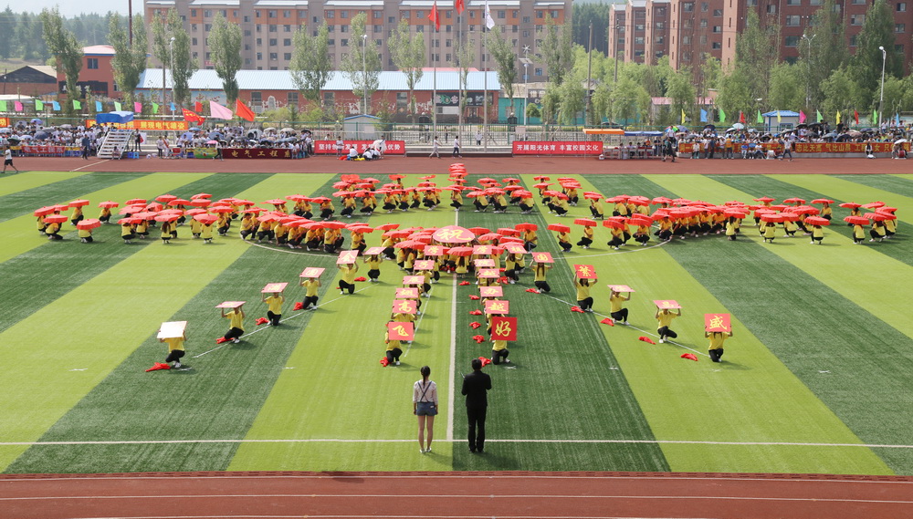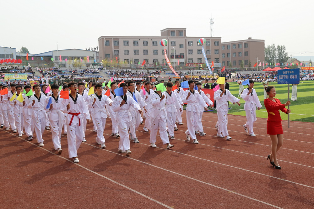 8:00时,运动会正式拉开序幕,伴随着《运动员进行曲》激昂的旋律,接受检阅的37支方队在校旗、会旗的引领下,踏着整齐的步伐,喊着嘹亮的口号,依次通过主席台。