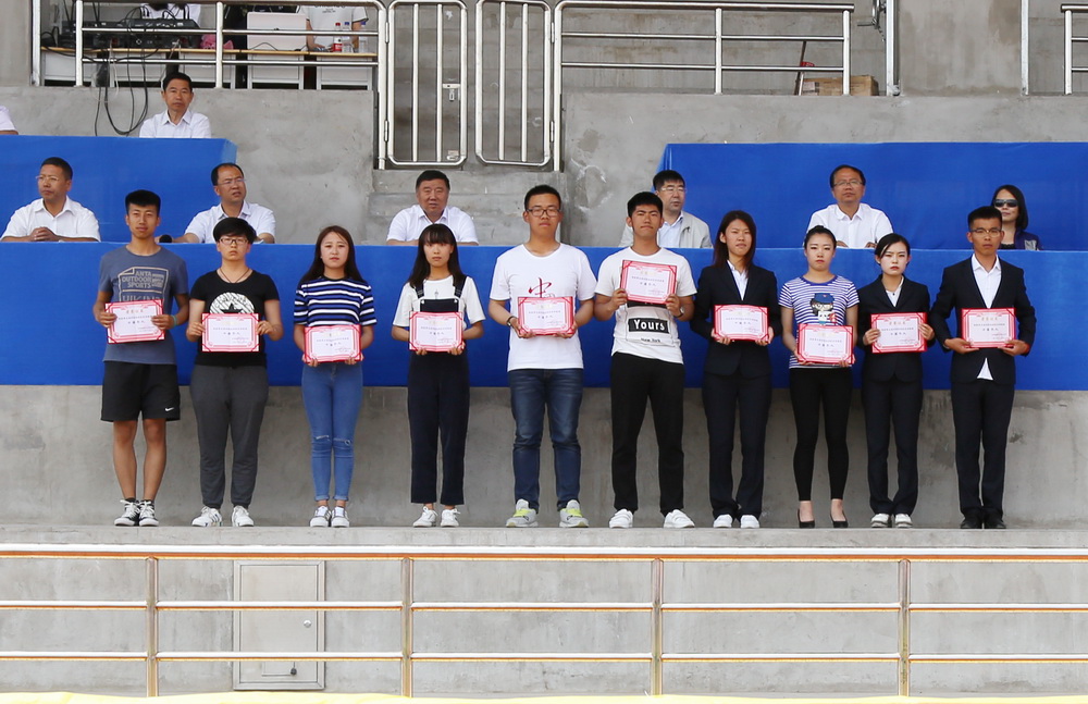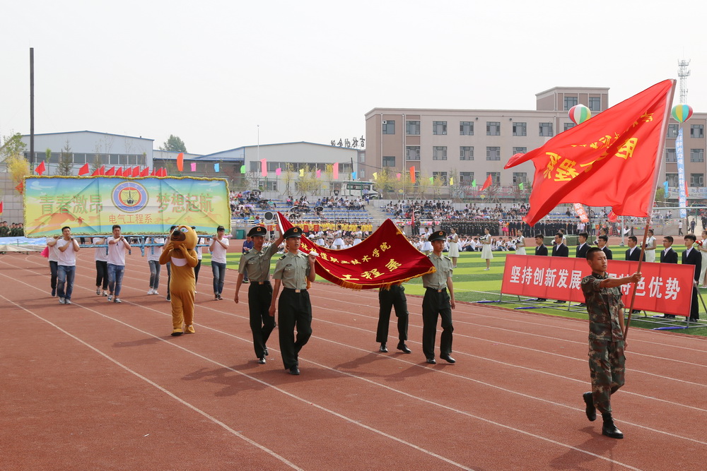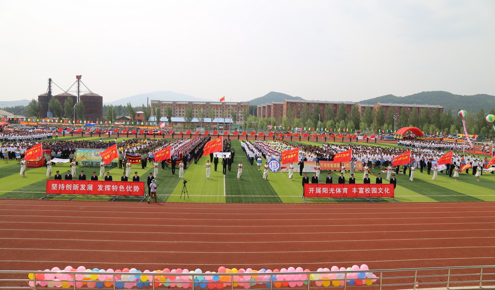 2016 年6月6日 ,学院田径运动场上,阳光明媚,万象呈新,红旗招展,笙歌动天,学院第五届田径运动会胜利召开。全院师生在学院体育场隆重集会。大会主席团成员学院党委书记于俊秋、院长周云龙、党委副书记曹炳志、副院长王华、纪委书记徐彤宝、教务处长于素芳、学生处长刘树全、工会主席李彦、党政办公室主任侯占峰、宣传统战部长周环宇、团委书记盛继前、体育教学部长乔跃进、学生会体育部长孙明辉,各系党总支书记、各系主任及相关部门负责人在主席台就座。开幕式由大会总指挥、副院长王华主持。