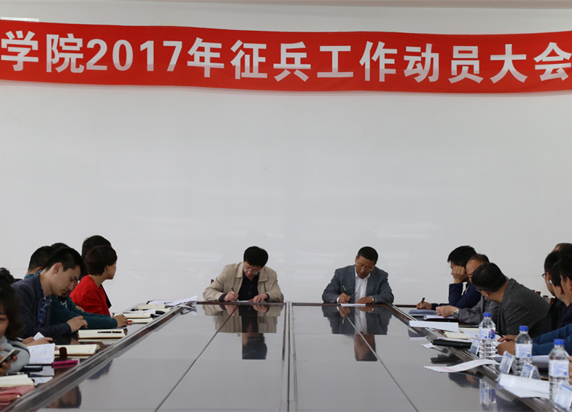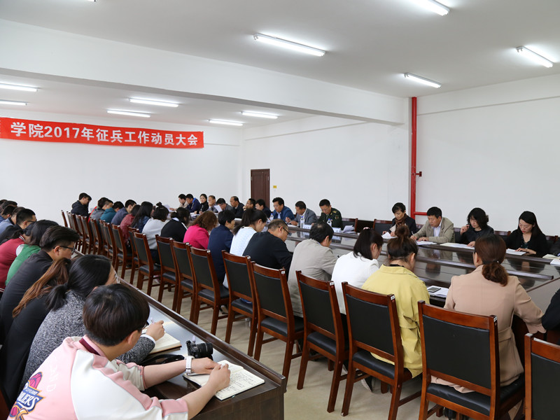 为了贯彻落实全国2017年普通高等学校大学生征兵工作电视电话会议精神,按照吉林省教育厅和吉林省军区高校大学生征兵工作要求,学院于5月15日下午,在办公楼第二会议室召开2017年征兵工作动员大会。