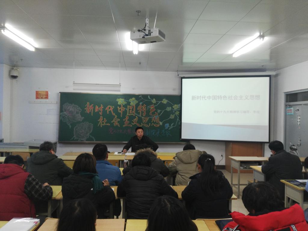 辅导中,副院长李欣主要解读了习近平新时代中国特色社会主义思想,分别从五个方面做了重点讲解:一是中国特色社会主义进入新时代,二是中国特色社会主义的发展历程,三是新时代中国特色社会主义思想的内涵,四是走中国特色社会主义道路的理论自信,五是新时代中国特色社会主义思想的基本方略。
