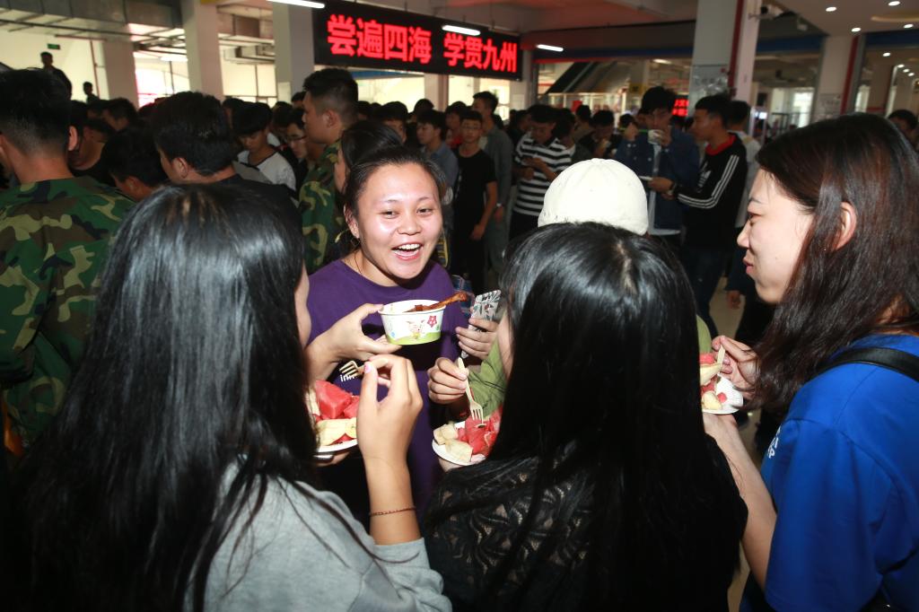 本次美食节设菜品展示、特色菜肴免费品尝、现场抽奖等活动。开幕式现场,共展示了几十种中西式菜肴、特色小吃、蛋糕、果品等健康美味的美食。活动中,学院领导亲自为同学们分发食品,师生纷纷拿出手机、相机进行拍照,并第一时间利用微信、微博等新媒体发到朋友圈,晒美食乐事,表达愉悦心情。这是一场味觉的盛宴,颇具地域特色的各类美食,在唤醒大家味蕾的同时,也为同学们带来了不一样的体验。