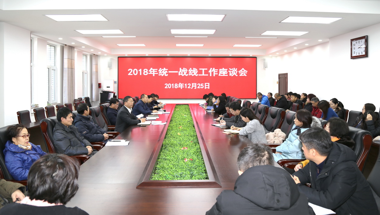 2018年12月25日,学院2018年统一战线工作座谈会在行政办公楼第二会议室召开。党委书记胡越平,党委副书记、院长曹炳志,党委副书记徐彤宝,宣传统战部负责人、各党总支书记,各民主党派人士、无党派高级知识分子、归国留学无党派人员参加了会议。会议由徐彤宝副书记主持。