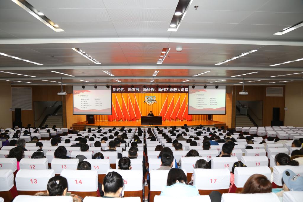 绽放着喜庆的笑脸,伴随着春天的脚步,新的学期开始了。新的学期、新的开始,带来新的机遇、新的挑战,也孕育着新的希望与憧憬。学院“新时代、新发展、新征程、新作为”职教大讲堂第五讲在新学期第一天开讲了。学院领导班子全体成员、全院教师、副科级以上干部参加了专题报告会。报告会由教科研处马卫强处长主持。
