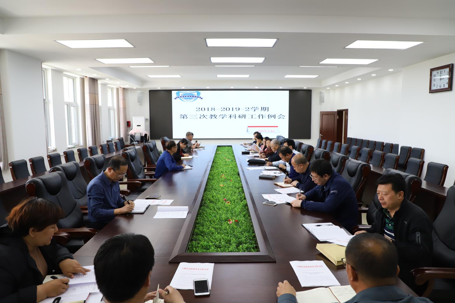 会上,各部门负责人对本部门4月份工作做了简要总结,并对5月份的工作进行了安排部署。教科研处就2019年科研提升工程遴选筹备工作、吉林省高教科研课题清查工作和结题验收预审工作、教科研管理软件信息录入和初审工作、校级课题开题进行了说明。教务处就召开现代学徒制试点项目建设和高水平专业建设的推进会、中国特色高水平高职学校和专业建设计划项目的申报、技能大赛准备情况进行汇报,对毕业前补考、通识课程学习、公共选修课申报工作进行了要求,对线上线下混合式教学检查情况、卓越技能人才培养、职业技能鉴定、期中教学检查及专业建设、实训、运行管理工作进行安排部署。图书馆就读书节开幕式启动、会议签到系统、logo设计、纸质图书的采购、全国高职高专信息素养大赛相关工作进行了说明。信息化办公室提出要重视网络安全,信息数据录入工作将常态化。国际交流中心对长白山青年教师骨干的研修、中外合作办学师生座谈会的举办、学生俄语和韩语书写及百词大赛、教师说课比赛的举办、国家公派留学工作调研座谈会等工作进行了汇报。