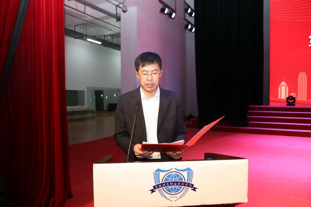 | 副校长王华宣读《关于表彰在2018年度国赛、省赛、第七届技能节竞赛中获奖学生和优秀指导教师的决定》 |