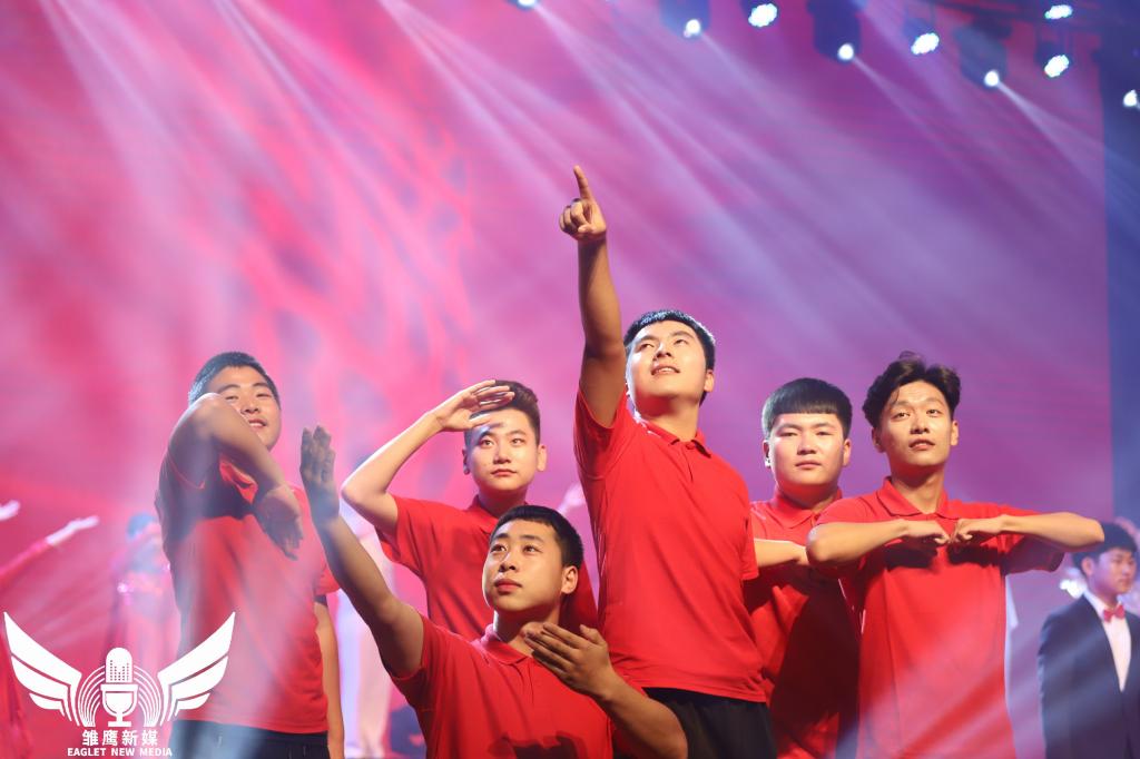 光影变幻的舞台上,声乐高昂,舞姿绚烂。每一位演出人员都热情投入,力求用完美的表演表达师生浓浓的爱国之情。音乐诗画《我为您庆生》饱含深情,祖国山河的滚滚波涛、辽阔田野,红旗招展的沧桑巨变、魅力风光在眼前一一浮现。由全体2019级新生辅导员共同演唱的《我们的新时代》,余音不绝,催人奋进,演绎了当代青年学工教师激情满怀、斗志昂扬的良好风貌。歌曲串烧《我和2035有个约》、《我们都是追梦人》、街舞《我的未来不是梦》、情景舞蹈《大梦想家》,彰显了当代青年大学生在新时代浪潮中放飞梦想、朝气蓬勃的青春力量。一首《世界向东看》,表达了全校师生对祖国的无限热爱和美好祝愿。