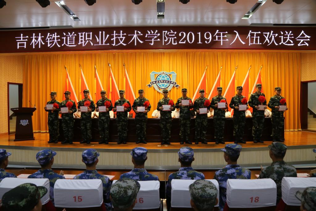 会上,学生工作部副部长、武装部副部长刘佳佳宣读了2019年我校参军学生入伍方案及运送计划。与会领导为99名参军入伍同学佩戴大红花,颁发荣誉证书。台上各位领导与入伍同学亲切握手并给予鼓励。机械工程学院工程机械运用技术1801班王金龙同学代表入伍的同学发言。他在发言中,代表全体应征入伍的同学感谢母校、感谢老师、感谢同学一直以来的支持与鼓励。代表所有的学校新兵向母校保证:到部队后一定会刻苦训练,努力学习,遵守纪律,使自己锻炼成一名优秀的人民子弟兵。不管走到哪里,会谨记“明德弘业”的校训,将铁院人的精神带到部队,努力为校争光。