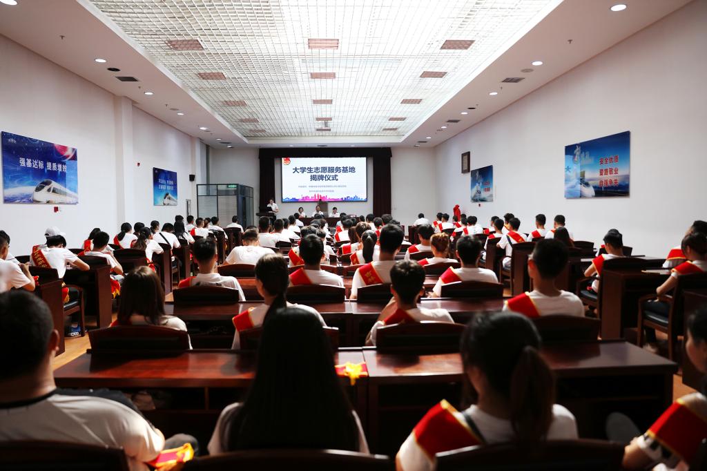 为深入学习宣传贯彻党的十九大精神和习近平新时代中国特色社会主义思想,引导广大青年学生在志愿实践中受教育、长才干、做贡献,校团委与长春火车站团委一起共同创建了大学生志愿服务基地。7月19日,基地揭牌仪式在长春火车站举行。校党委副书记徐彤宝、中国铁路沈阳局集团有限公司长春站党委副书记周学军出席会议,校团委书记于威、长春站客收科科长崔伟、长春站教育科工程师赵明明、长春站售票车间党支部书记孙鹏、长春站客运车间党总支副书记张严、铁道运输学院团委副书记黄乐乐、铁道信号学院团委书记李佰玲、铁道工程学院团委副书记张慧茹、铁道机车学院团委副书记王蒙、铁道车辆学院团委副书记孙旭、校团委干事陈思,以及2019年长春站暑期志愿服务队的全体同学参加了本次活动。长春站团委书记纪兵主持仪式。