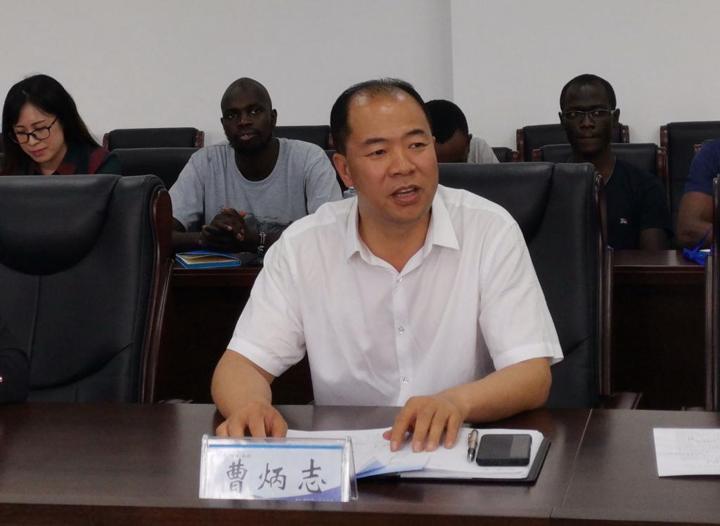 曹炳志代表学校致辞,他代表学校党委书记胡越平对43名留学生和北京交通大学带队老师的到来表示热烈欢迎,并向留学生们介绍了我校的基本情况、人才培养成果、办学特色以及我校在国际交流与合作方面所取得的成就。他对留学生们提出了三点要求和希望,一是要珍惜学习机会,认真学习,勤奋学习,完成好学习任务;二是要遵守中国的法律法规,遵守学校的校纪校规,做合格学员;三是要注意安全,确保安全,提高出行安全意识。最后,他要求学校参与本期培训班的教师和所有工作人员,要为本期培训班提供优质的服务和教学条件,确保完成本期培训班所有教学、管理、生活等各项工作任务。