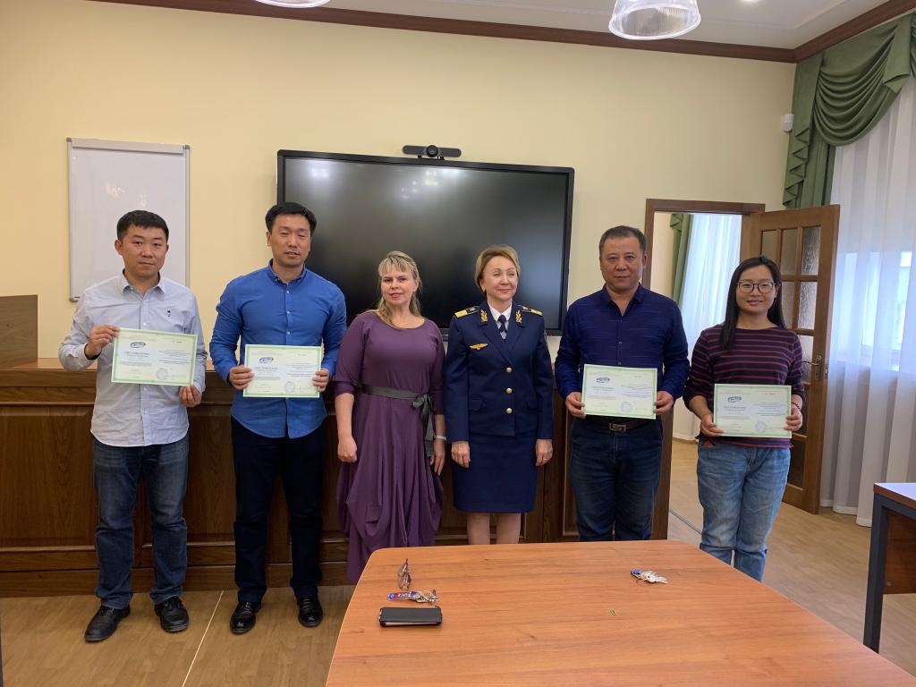 在结业仪式上,乌拉尔国立交通大学国际交流处主任叶夫根尼娅为每位学员颁发了结业证书,肯定了研修团成员在这几天学习过程中的良好表现,祝愿各位团员能把学习到的内容应用到以后的工作中去,取得更多的成就。同时,她还表达了对中华人民共和国70周年华诞的美好祝愿,代表团成员也对俄方的热情接待以及丰富课程安排表达了感谢,希望今后双方在学术、科研、人员交流等方面有更加深入的合作。