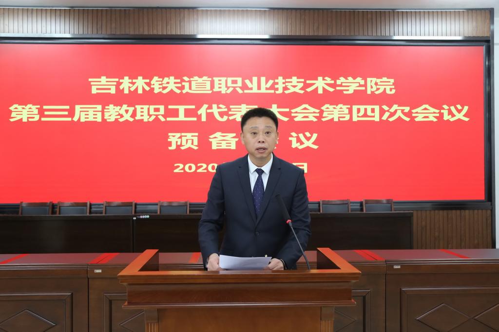 曹炳志所作的《报告》回顾了学校2019年在加强党的全面领导,政治领航卓有成效;落实立德树人根本任务,思想政治工作成效显著;探索创新学生工作机制,学生工作成绩斐然;提升教育教学质量,内涵建设取得突破;招生再创新纪录,就业工作持续向好;加强师资队伍建设,激发人才发展活力;全面深化产教融合,校企合作步伐加快;提升中外合作办学水平,国际交流合作日益深化;社会办学声誉远播,职教影响稳步扩大;做好培训继续教育,社会化办学繁荣发展;创建平安和谐校园,积极弘扬大学文化;加强精细化管理,治理能力不断提升;积极打造“幸福铁院”,增强师生获得感;强化责任担当,落实脱贫攻坚政治任务等十四个方面取得的可喜成绩。分析了学校新一轮振兴发展面临的新形势,部署了2020年学校的重点工作任务。《报告》强调,2020年是全面建成小康社会和“十三五”规划的收官之年,是中国特色高水平专业群建设的开局之年,我们在面临着大好形势的同时,要抢抓四大发展机遇:一是加快教育现代化建设带来的机遇;二是加快发展现代职业教育带来的机遇;三是加快发展具有吉林特色的现代职业教育带来的机遇;四是高铁和城市轨道交通行业快速发展带来的机遇。《报告》提出了2020年学校在提高政治站位,坚决打赢疫情防控阻击战;加强和完善党对学校工作的全面领导;以“双高计划”建设为中心,推进学校高质量发展;全面加强内涵建设,不断提高教育教学质量;坚持立德树人根本任务,提升学生教育、管理和服务水平;加大工作力度,切实做好招生与就业工作;深化产教融合与校企合作,强化培训和继续教育工作;加大力度,提升国际化办学水平;推进学校治理体系和治理能力现代化建设;全面创建平安稳定和谐校园;全面决战决胜脱贫攻坚;加强校园文化建设,打造“幸福铁院”;凝心聚力促发展,攻坚克难上台阶等十三大方面50项具体工作。同时,《报告》要求全校上下要以更加开拓进取的精神、更加奋发有为的姿态、更加务实肯干的作风,守初心、担使命、共奋进,奋力书写学校新时代新一轮振兴发展的崭新画卷。让我们凝心聚力,抢抓机遇,攻坚克难,共同创造、共同建设、共同迎接吉铁院光辉灿烂的美好明天!