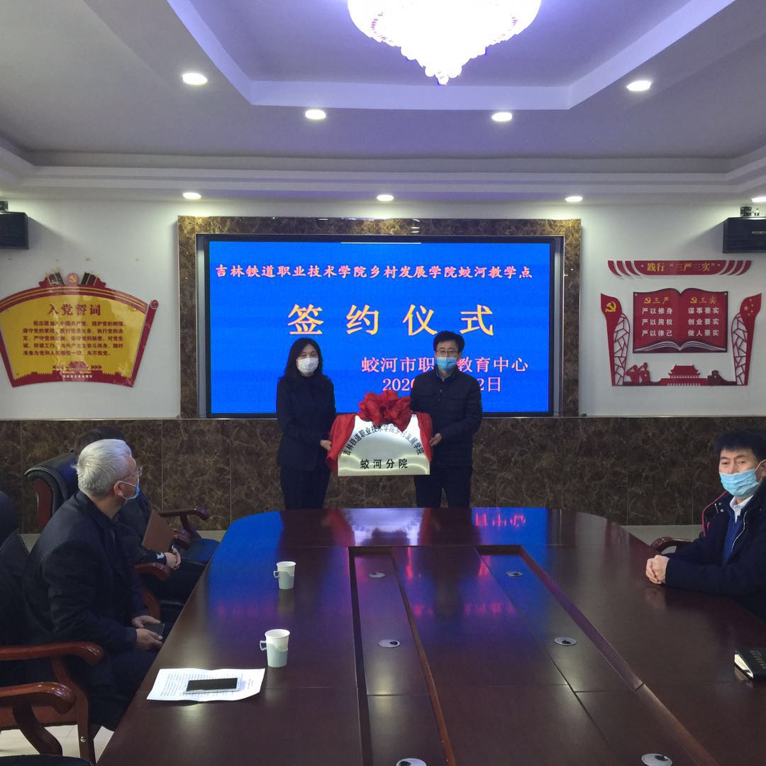 仪式上,黄晓威致辞并代表蛟河市职教中心签字。我校副校长张辉代表学校颁发了“吉林铁道职业技术学院乡村发展学院蛟河分院”牌匾。同时,代表学校感谢蛟河市政府、教育局、职教中心对高职扩招工作的大力支持。张辉强调,本次签约是落实党中央乡村振兴战略的生动实践,是落实高职扩招送教入村,培养乡村振兴发展所需人才的具体举措,意义重大。