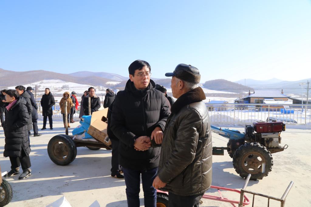 在2020年春节来临之际,为进一步深入学习贯彻习近平总书记关于扶贫工作的重要论述,扎实做好我校脱贫攻坚工作,促进贫困村各项事业发展,增进包保单位与贫困村村民情感。1月10日,学校党委副书记、校长曹炳志,党委副书记徐彤宝,副校长田雷,副校长李欣以及各党总支书记赴学校包保的安图县石门镇仲坪村,对70户贫困户进行春节慰问走访。