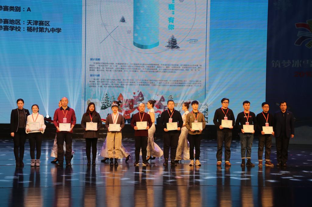 在全国校园冰雪创意设计大赛的颁奖典礼上,北京冬奥组委新闻宣传部教育和公众参与处处长王军;吉林省教育厅厅长李晓杰为我校获奖教师代表进行了颁奖。