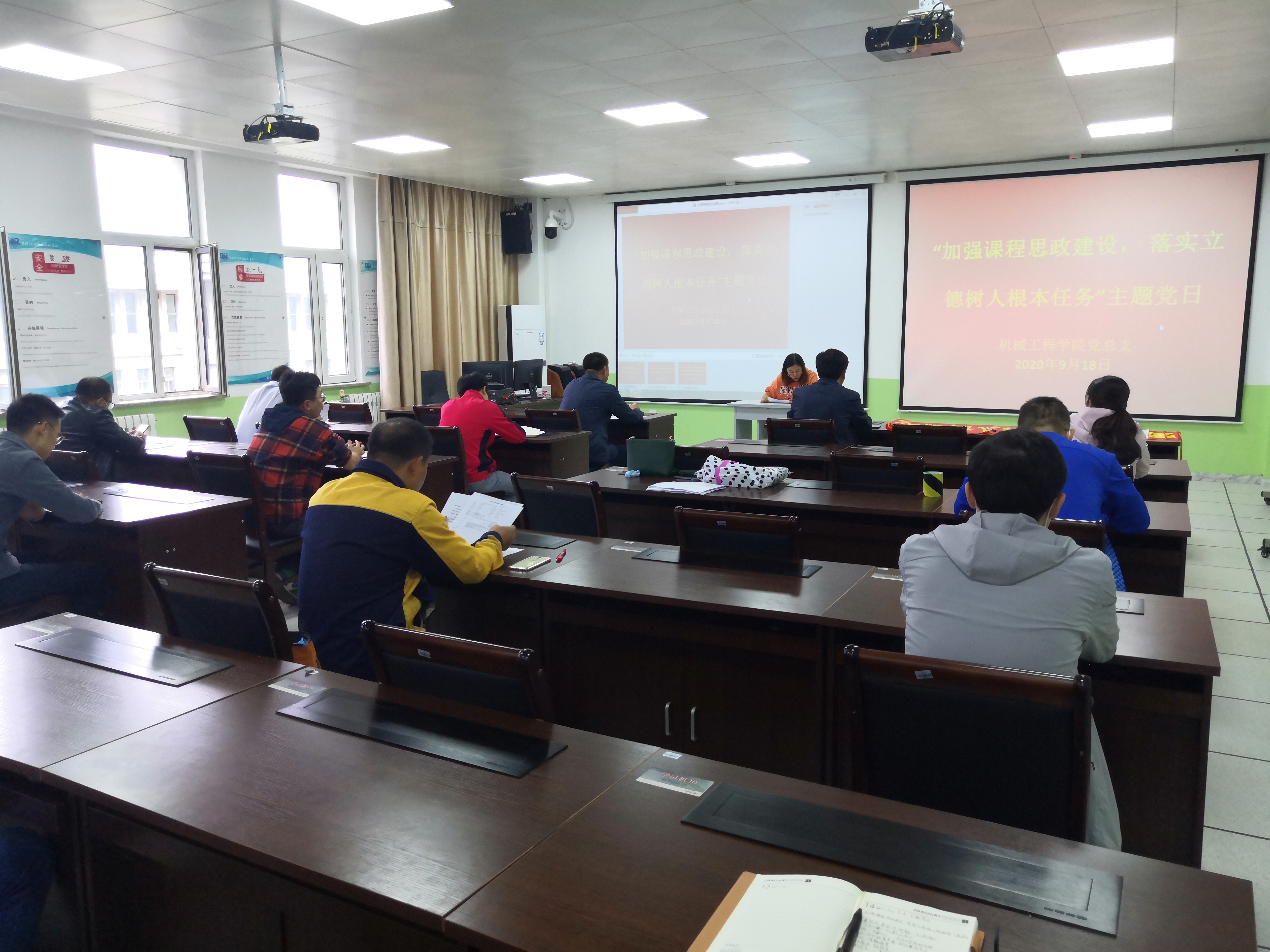 为更好的贯彻落实习近平总书记视察吉林时重要讲话精神和重要指示精神,结合总书记在学校思想政治理论课教师座谈会上的讲话精神,9月18日,机械工程学院开展了以“加强课程思政建设,落实立德树人根本任务”为主题的党日活动。副校长李欣出席会议、机械工程学院部分教师参加会议,会议由学院汽车制造教研室副主任王瑞玲主持。