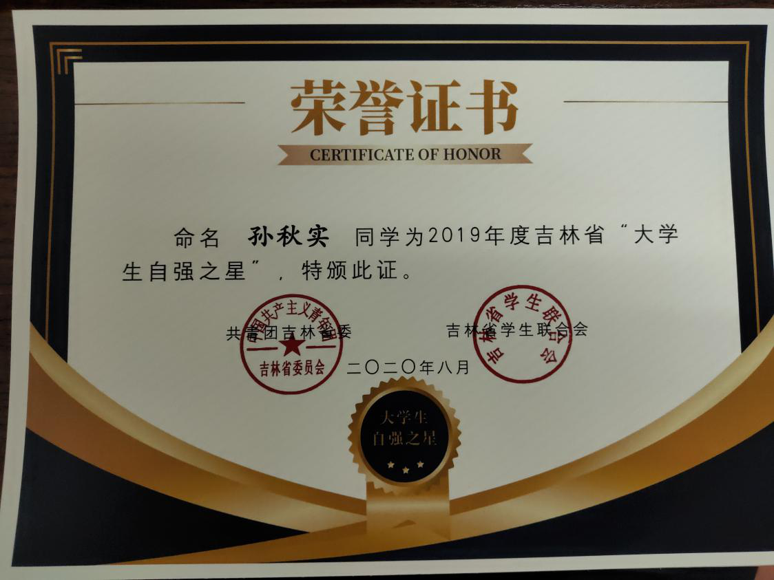 为深入贯彻习近平新时代中国特色社会主义思想,在当代大学生中树立一批可亲、可敬、可信、可学的榜样,进一步培育和践行社会主义核心价值观,校团委按照共青团中央、全国学联《关于组织开展2019年度寻访“中国大学生自强之星”活动的通知》要求,组织开展了“吉林省大学生自强之星”寻访活动。