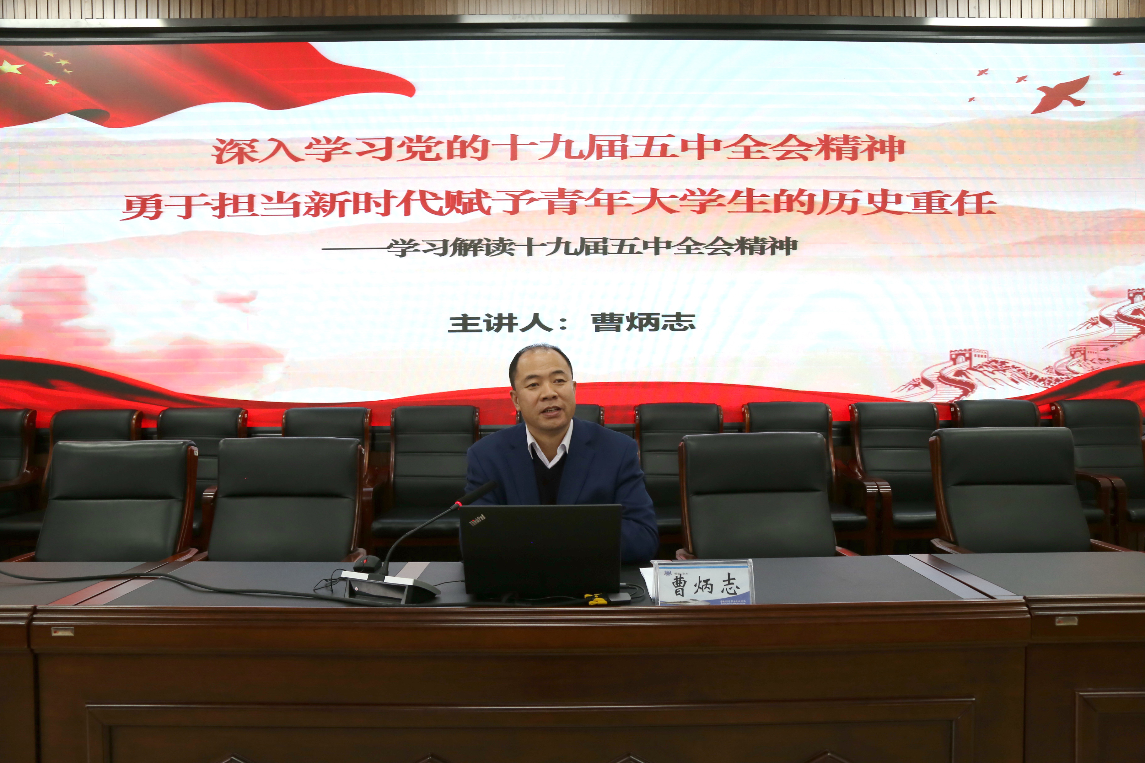 学校党委副书记、校长曹炳志从“深刻理解十九届五中全会的重要意义”“深刻认识规划《建议》的核心要义”“深刻把握新时代赋予我们的历史机遇”三部分,深入浅出,为大学生们详细解读了全会的精神要义、学习要旨、实践要务,号召大家要读懂全局、读懂时代、读懂蓝图,将来到祖国最需要的岗位上奋力拼搏,真正成为社会主义的合格建设者和可靠接班人。讲授内容不断激起青年学子的爱国热情和奋斗激情,使他们进一步坚定了“四个自信”,更加明确了奋进新时代、成就出彩人生的使命召唤。