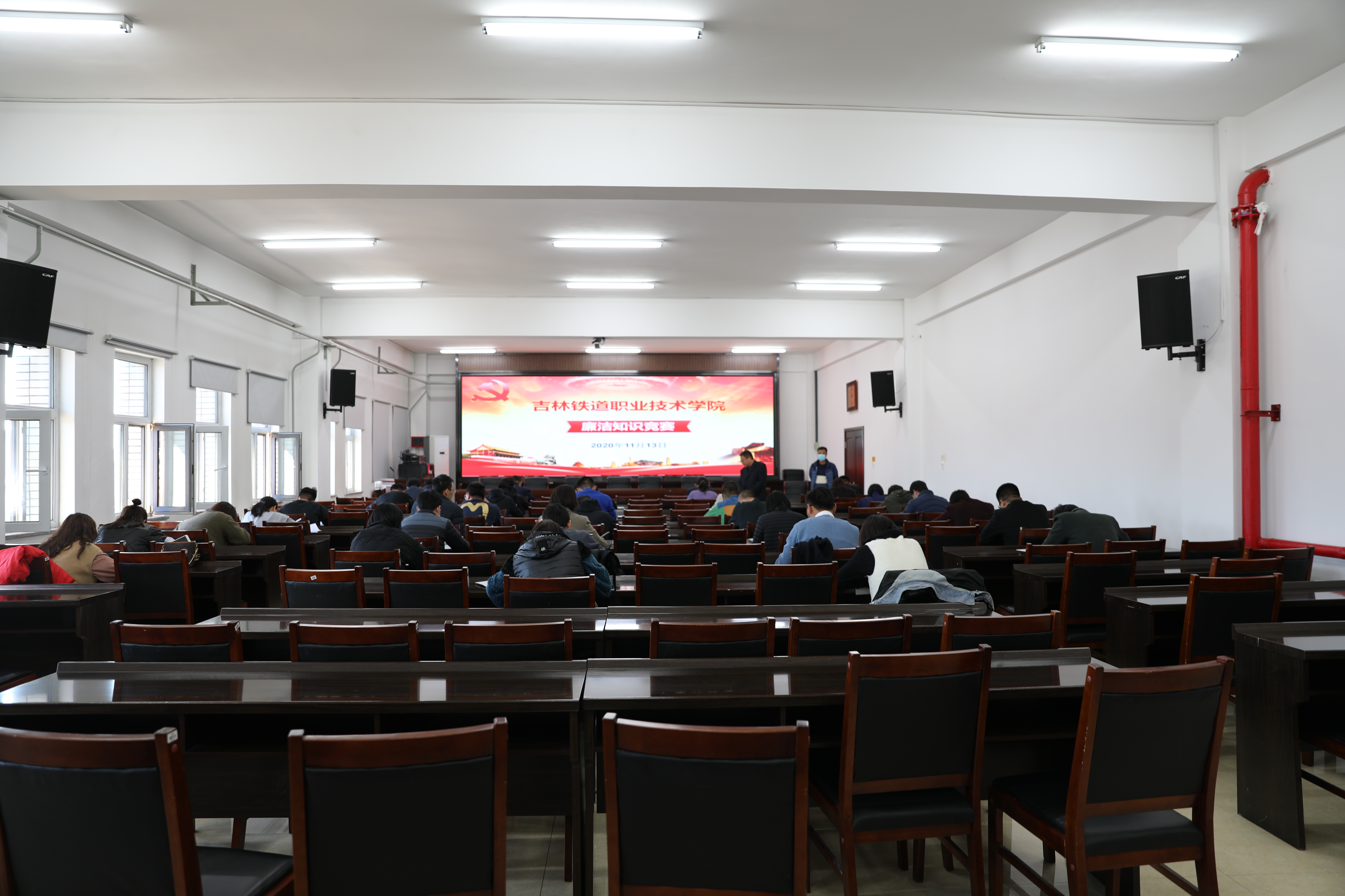 2020年11月13日下午,学校纪委在办公楼第三会议室举行“廉洁知识” 竞赛活动,来自全校13个党总支和1个直属党支部共计42名选手参加竞赛答题。