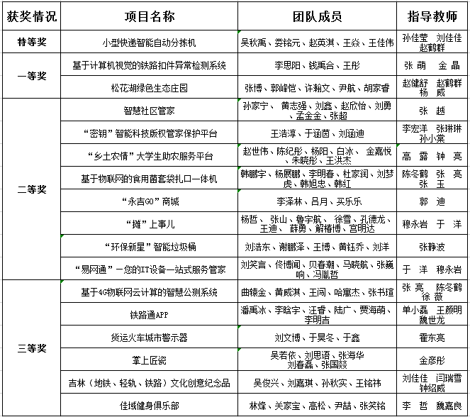 大赛期间共收到来自全省 46 所高校推报的 696 件作品。经过专家评审、公开答辩等程序确定最终成绩。本届大赛我校推荐的17件作品全部获奖,其中特等奖1项,一等奖2项,二等奖8项,三等6项。目前,由孙佳莹、刘佳佳、赵鹤群老师带队指导吴秋禹、娄铭元、赵英淇、王焱、王佳伟同学的《小型快递智能自动分拣机》项目作为特等奖入围全国决赛。大赛自举办以来,我校代表队首次夺得省赛特等奖,获奖等级和获奖数量均取得了新突破。同时,我校也被大赛组委会授予“优秀组织奖”。