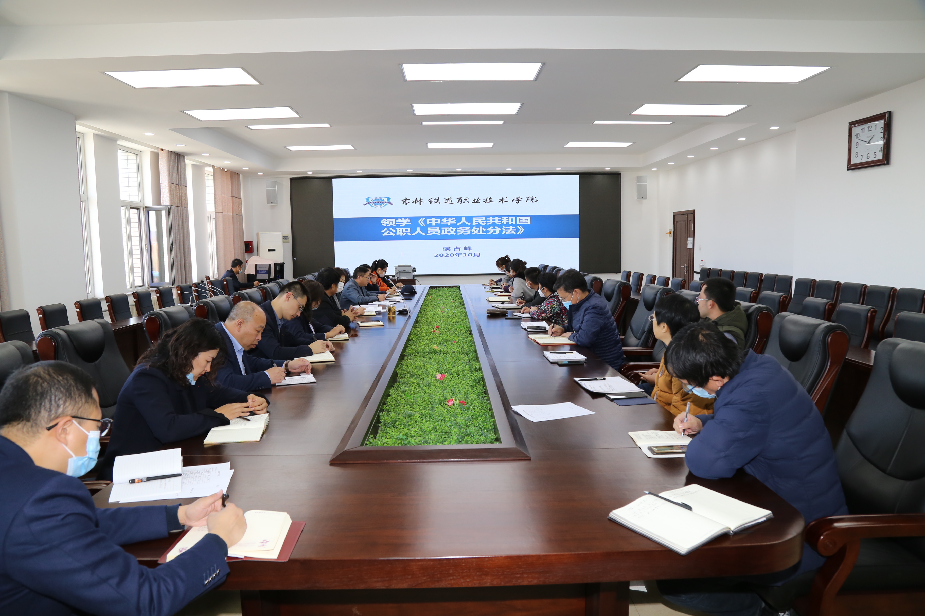 会上,侯占峰传达了省纪委书记、监委主任张忠同志在全省纪检监察机关精准运用加大执纪“四种形态”视频会议上的讲话和省纪委监委《关于吉林省纪检监察机关精准运用监督执纪“四种形态”的指导意见》文件精神。领学了《中华人民共和国公职人员政务处分法》,传达了吉铁职院党发〔2020〕70号文件精神。