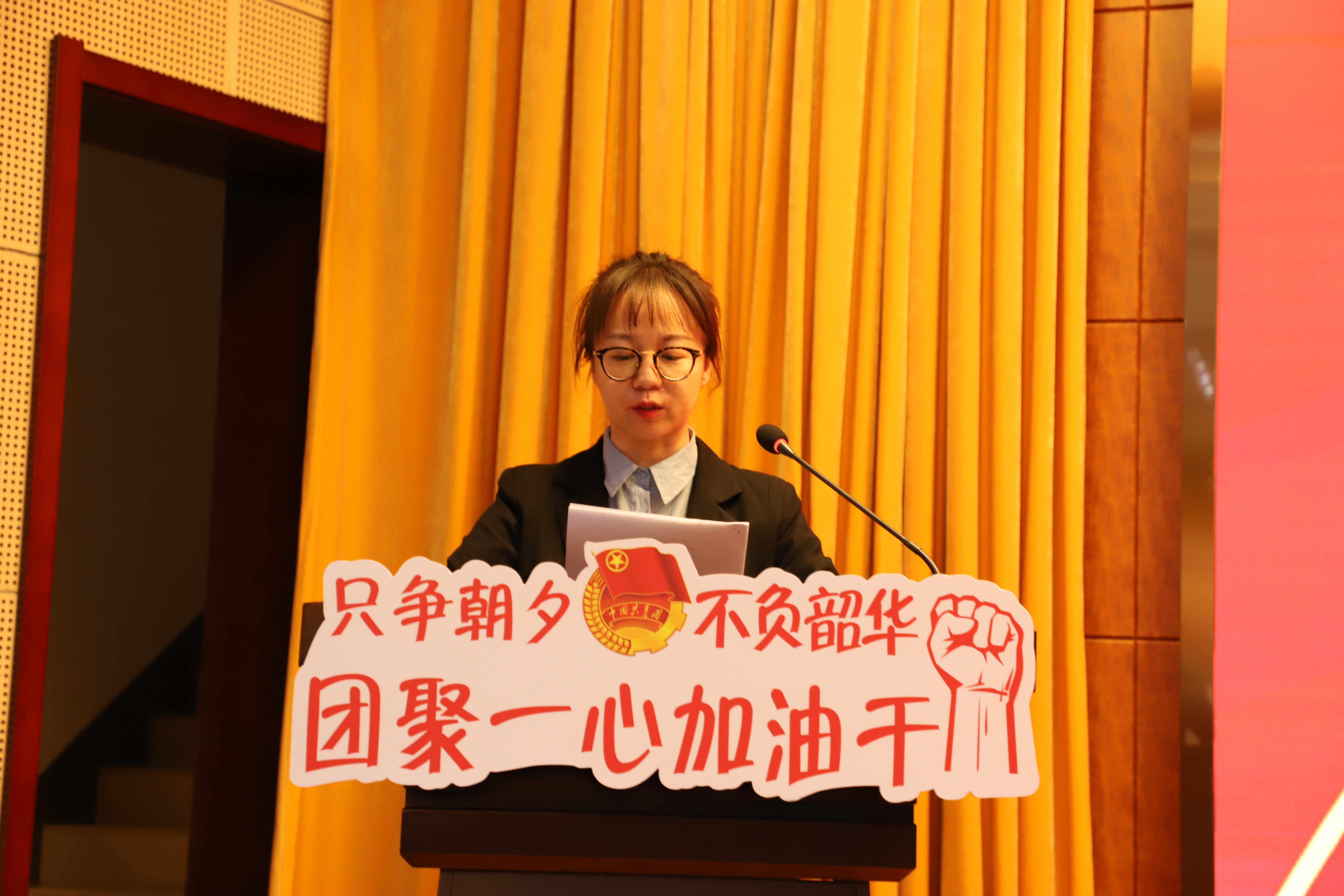会议在庄严的国歌声中拉开帷幕。团委书记刘佳佳同志代表学校团委作了《守初心迎建党百年担使命谱青春华章—2020年度共青团工作报告》;学工部部长李原福同志宣读《2020年度共青团工作表彰决定》;与会领导为获奖的先进集体和优秀个人颁奖;铁道机车学院党总支副书记曹煜、城市轨道交通学院学生吕霖、东北亚高铁学院学生纪博文分别代表获奖的先进集体、优秀个人和新团员发言。