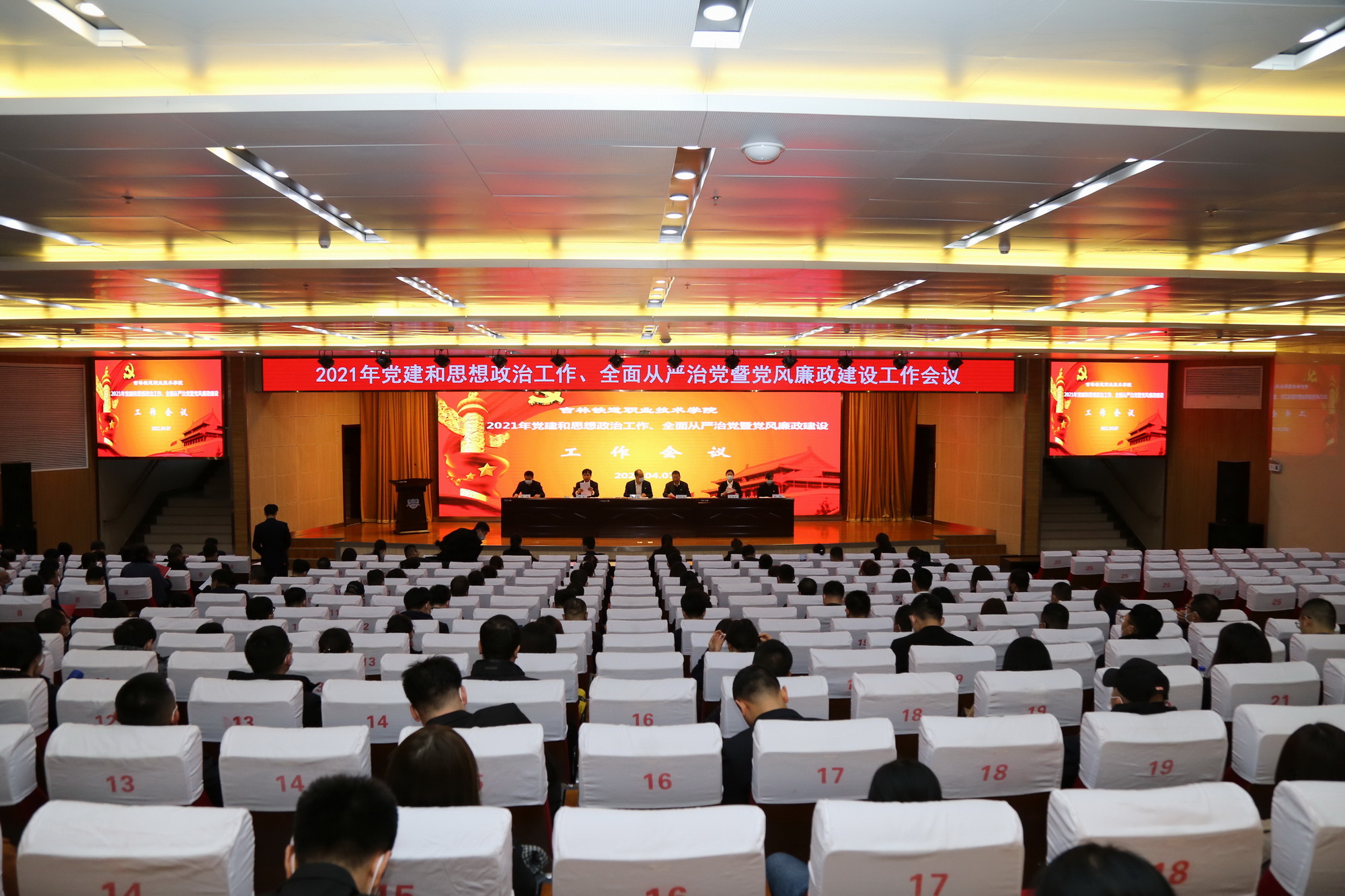 4月7日,学校党委在图书馆报告厅召开“2021年党建和思想政治工作、全面从严治党暨党风廉政建设工作会议”,全校副科级及以上干部、辅导员及全体机关干部参加会议。会议由学校副校长田雷主持。