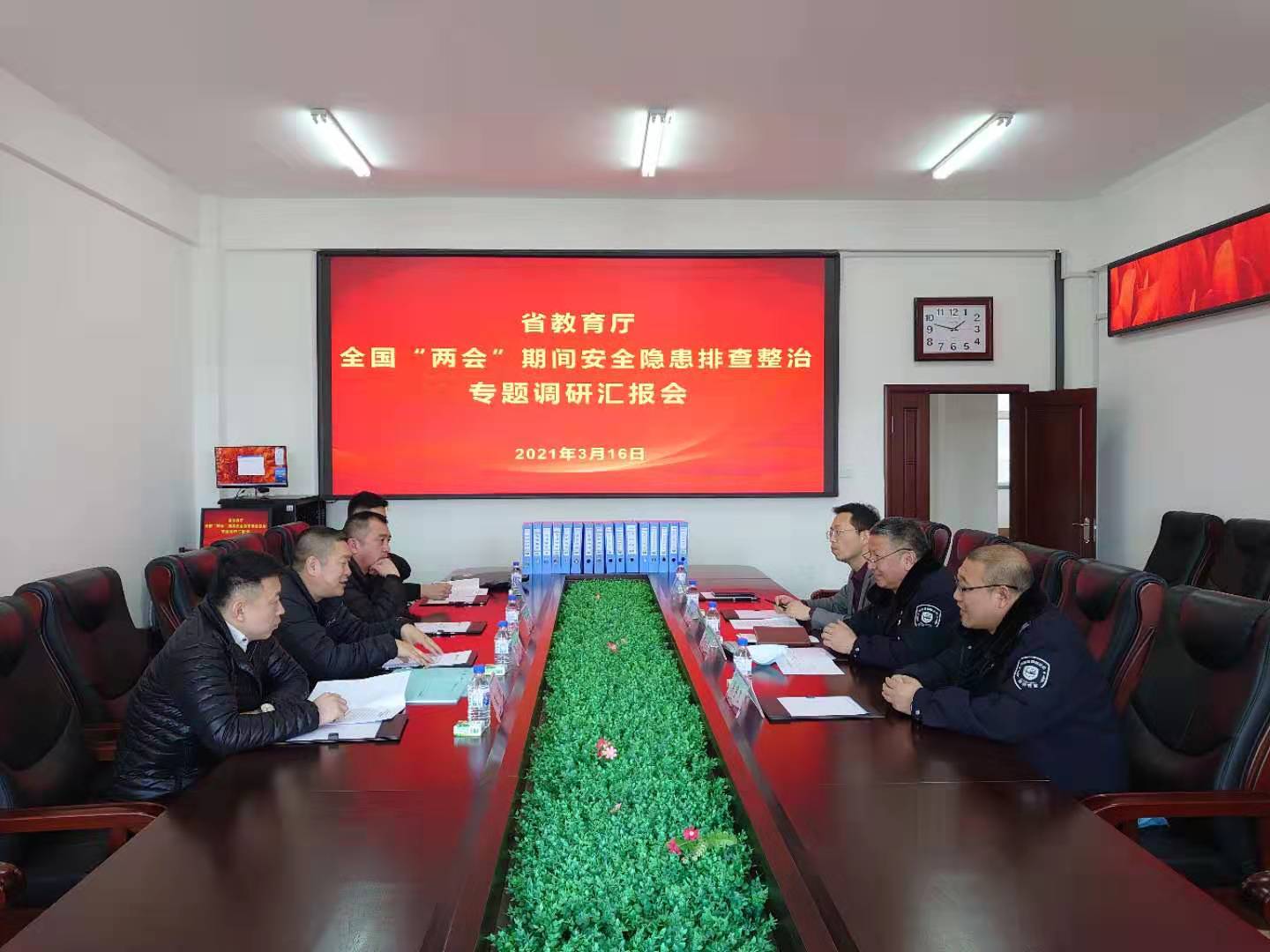 按照吉林省教育厅《关于组织开展全国“两会”期间全省教育系统安全隐患排查整治工作的通知》要求,2021年3月16日,以长春金融高等专科学校保卫处处长鞠海石为组长的省教育厅全国“两会”期间安全隐患排查整治专题调研组一行4人来到我校,对我校全国“两会”期间安全隐患排查整治工作进行专题调研检查。