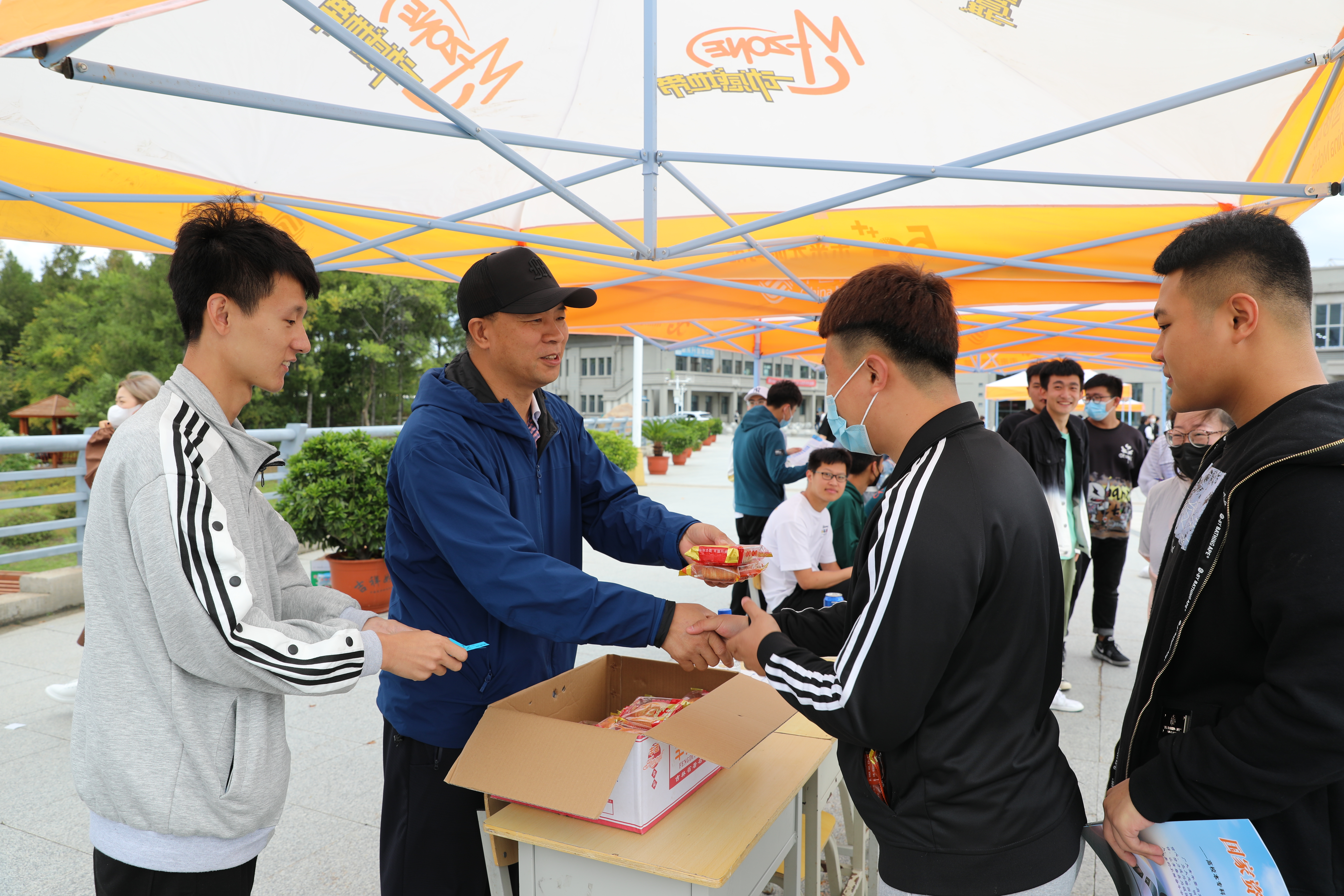 学校党委副书记、校长曹炳志和学校党委副书记徐彤宝分别来到活动现场,认真视察了各个服务点工作情况,并与现场学生及工作人员进行了亲切交流,同时参与到爱生节现场活动当中,与老师和同学们合影留念。曹炳志在现场为同学们发放爱心月饼和餐券,祝福同学们“双节”快乐。活动现场气氛热烈,学生络绎不绝。