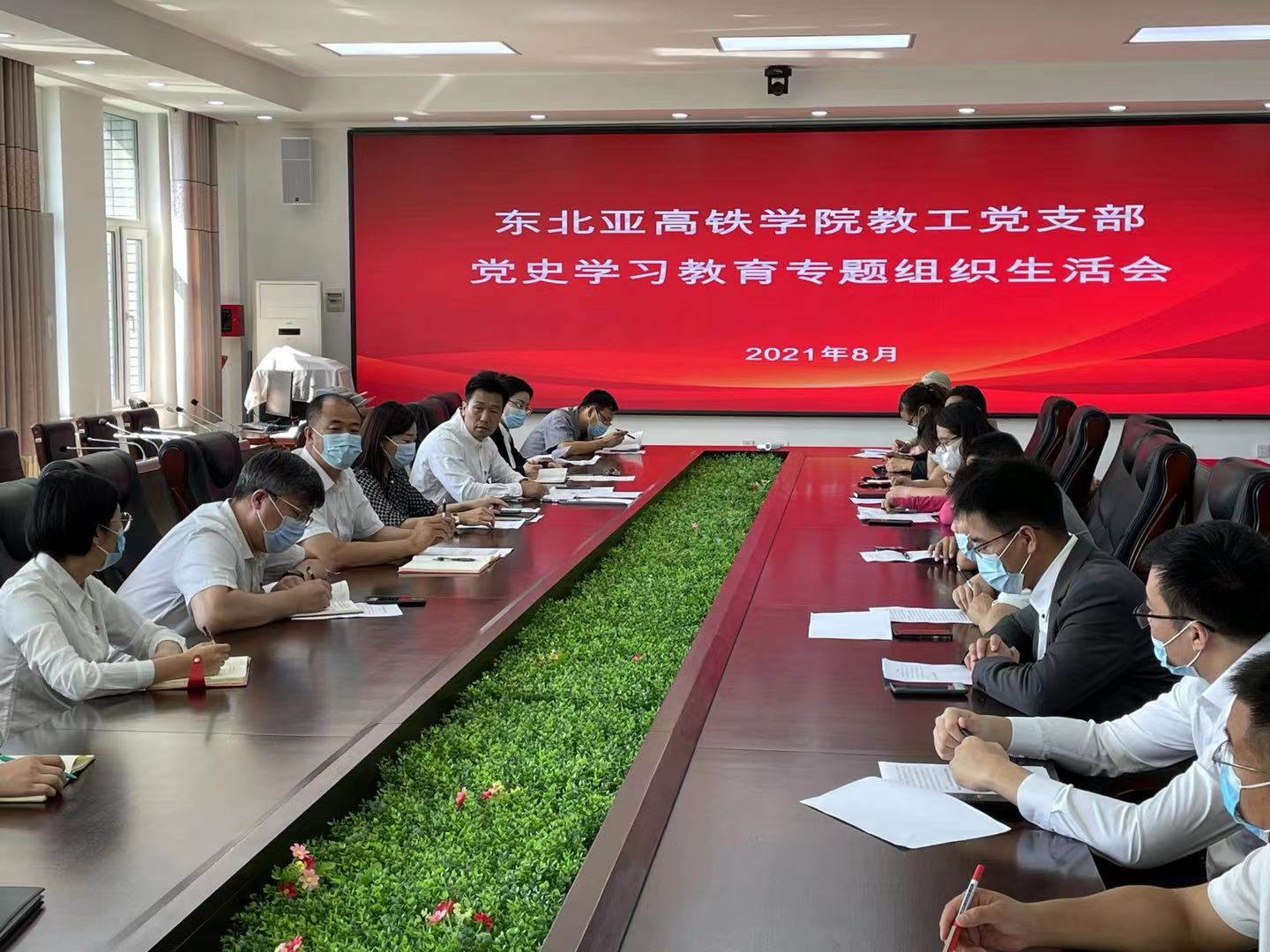 按照《中共吉林铁道职业技术学院委员会2021年党史学习教育专题组织生活会的方案》要求,2021年8月27日上午,东北亚高铁学院教工党支部在校第二会议室召开了党史学习教育专题组织生活会,党委副书记、校长曹炳志到会督导,党政办公室主任李慧娟陪同督导。东北亚高铁学院党总支书记于威,党总支副书记李爽列席会议。会议由教工党支部书记刘德强主持。