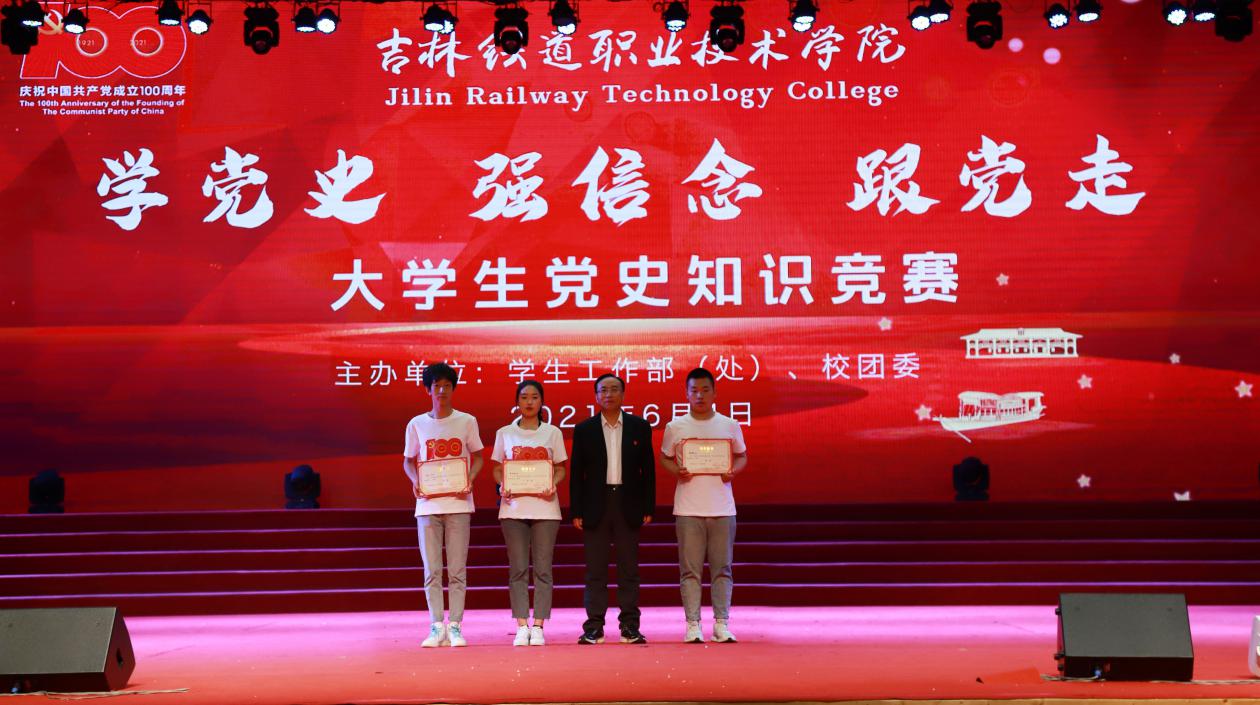 为庆祝中国共产党成立100周年,深入推进党史学习教育活动,引导全校青年大学生学史明理、学史增信、学史崇德、学史力行。2021年6月4日在大学生活动中心,由学生工作部(处)和校团委联合主办的“学党史、强信念、跟党走”大学生党史知识竞赛成功举办,全校共9支代表队伍27人参加比赛。学校党委书记宋春辉、校长曹炳志、党委副书记徐彤宝、副校长田雷、纪委书记苏春年、副校长李欣、副校长张辉、学校相关部门负责人、全体学工干部和1000名学生代表现场观看活动。