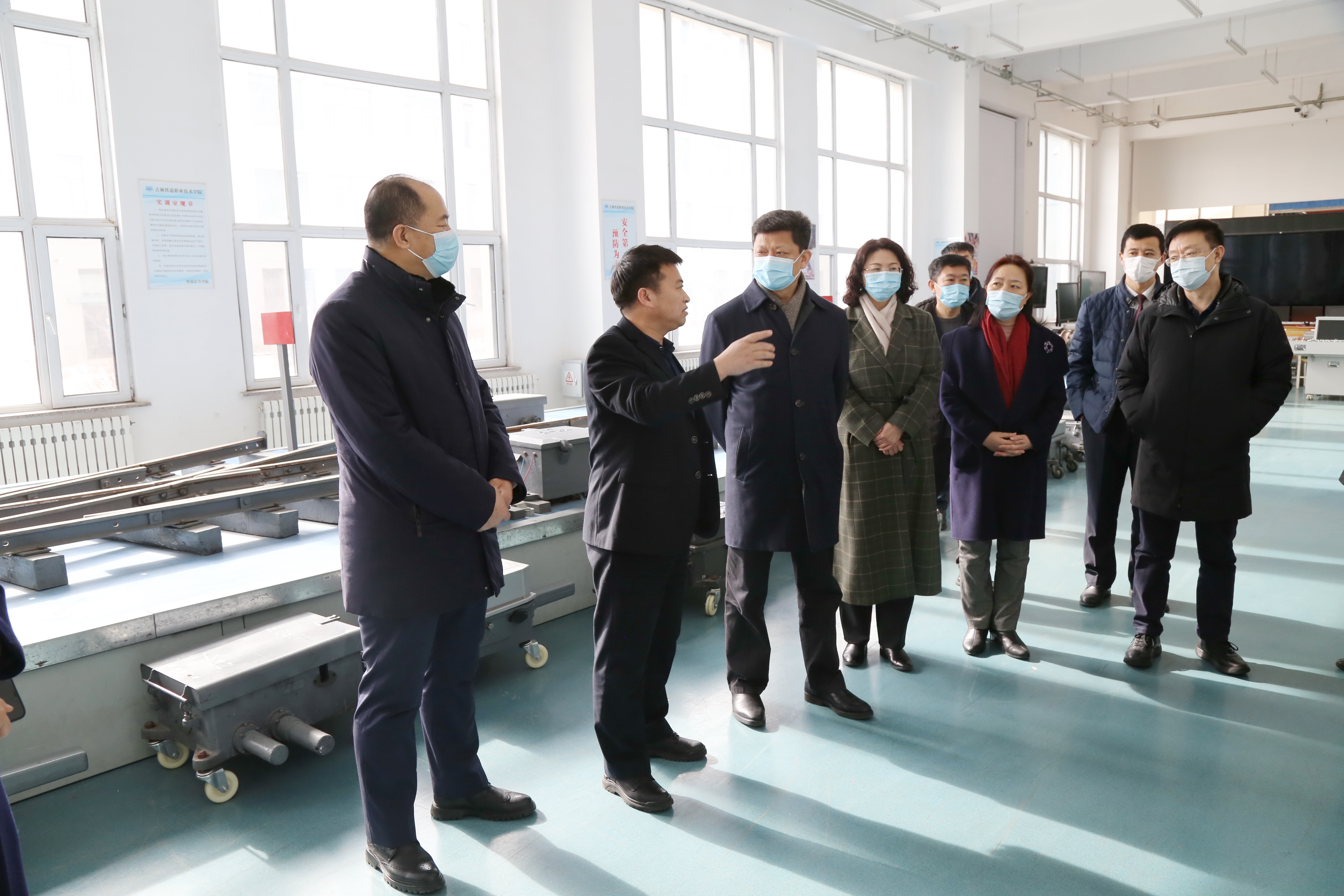 | 3月2日,吉林市人大常委会主任李天林一行到学校调研,参观铁道综合演练场 |