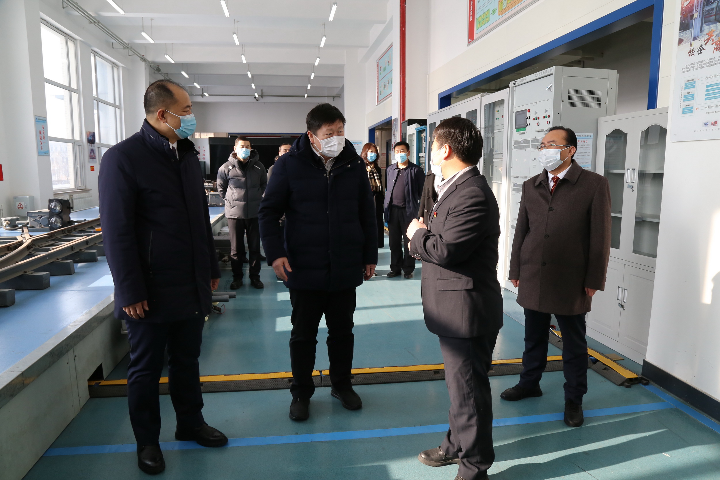 2月15日,吉林市委市政府召开支持学校升格职业本科大学现场办公会,贺志亮一行参观学校实习实训基地,赵丙阳 摄