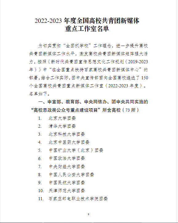 近日,中宣部、教育部、中央网信办、团中央宣传部联合面向全国高校遴选了 150 个全国高校共青团重点新媒体工作室,经过材料申报、专家评审,共青团吉林铁道职业技术学院委员会官方新媒体工作室『雏鹰青媒』入选全国高校共青团新媒体重点工作室名单。
