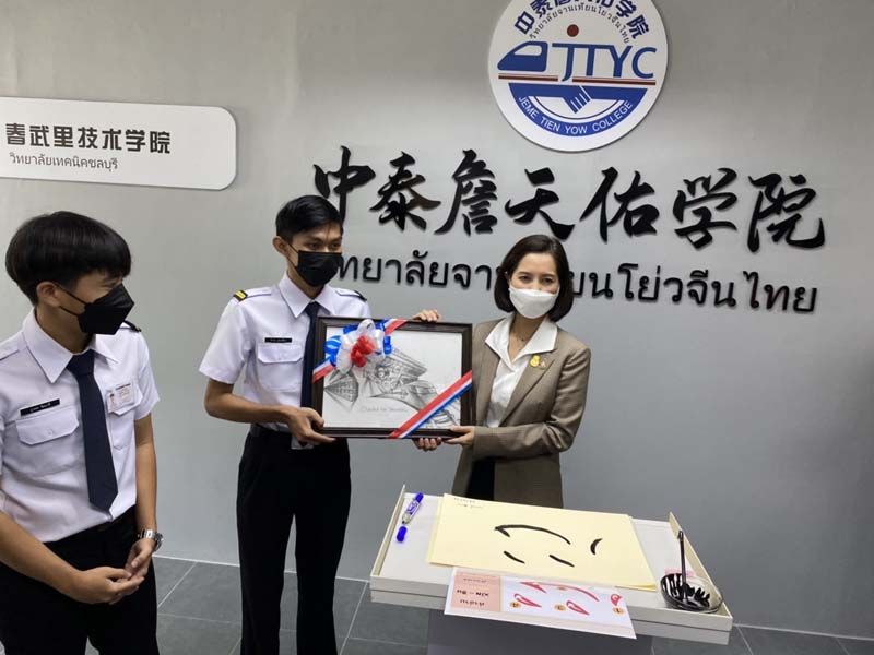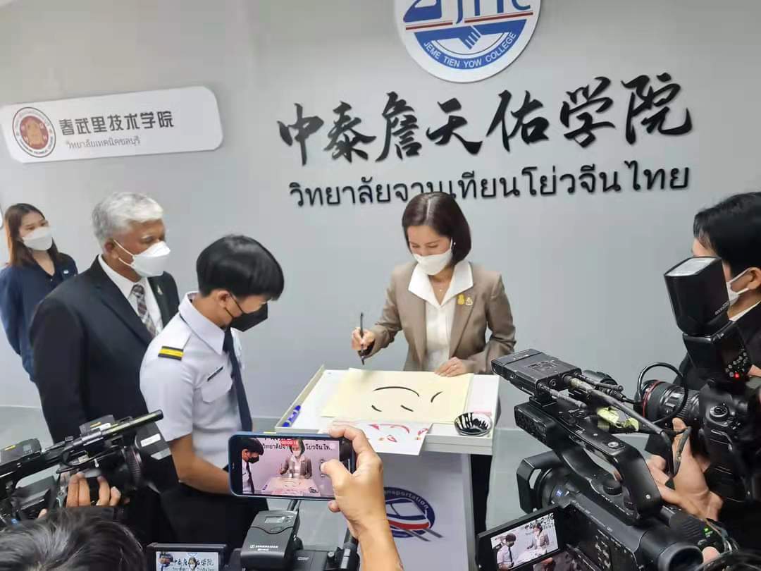 当地时间11月24日上午,泰国教育部部长德莉努·天通(Treinuch Thienthong)在泰国春武里技术学院出席职业人力网络管理中心揭牌仪式期间,专程到访吉铁院海外分校“中泰詹天佑学院”参观交流并题字。泰国职业教育委员会秘书长素贴·康桑提亚、春武里省省长Phakhathorn Thienchai及春武里技术学院等25个职业院校校长陪同参观。