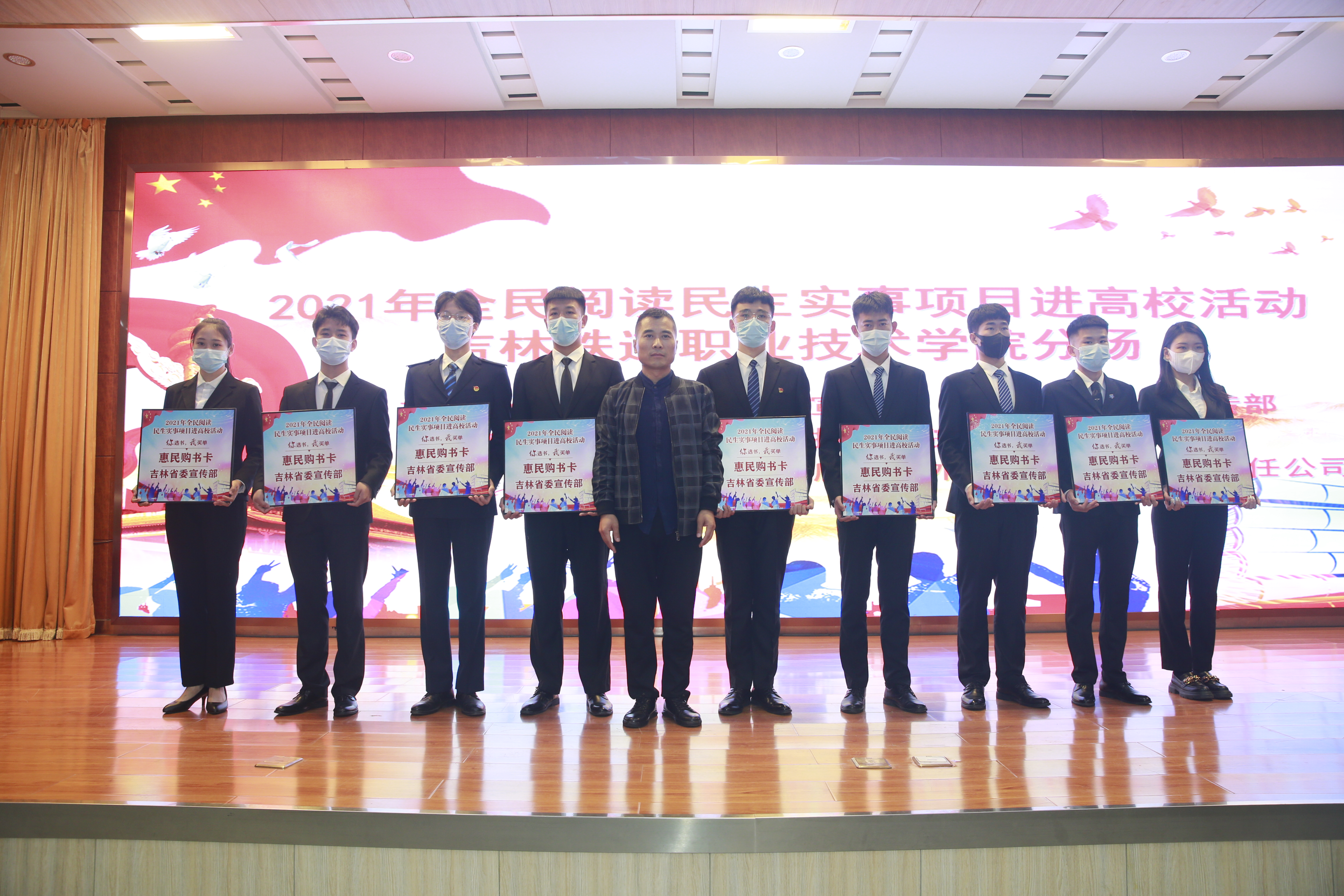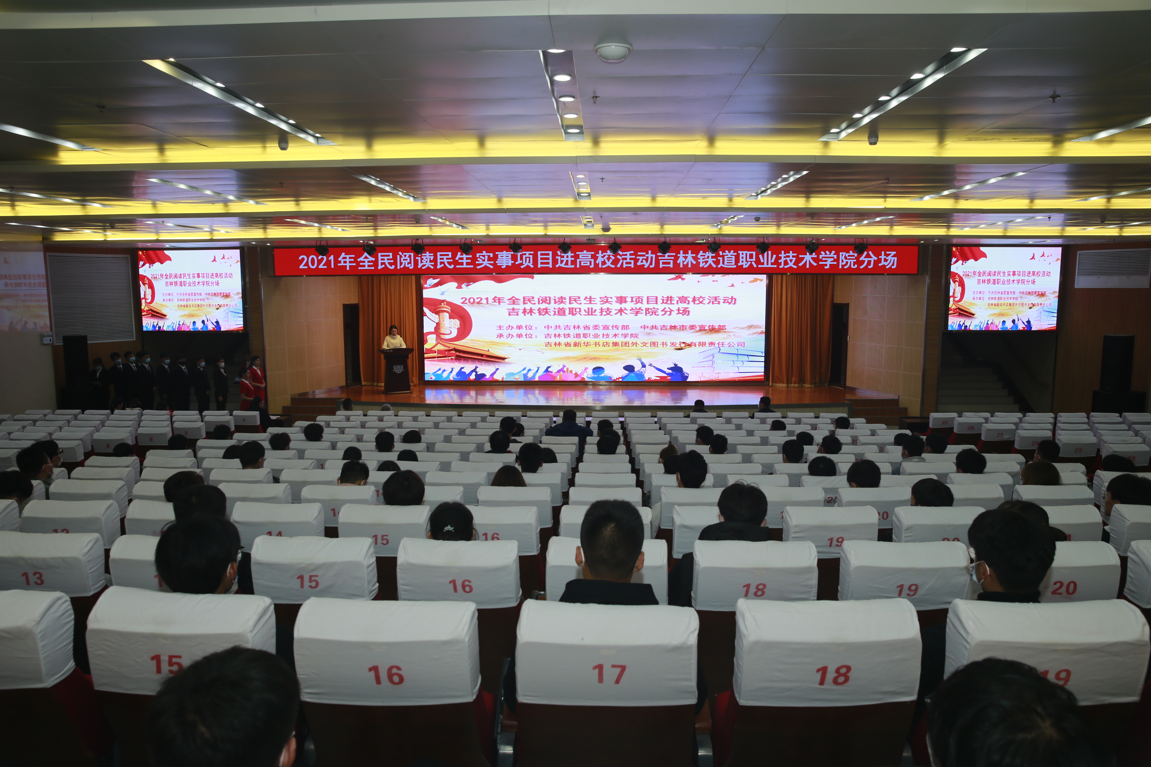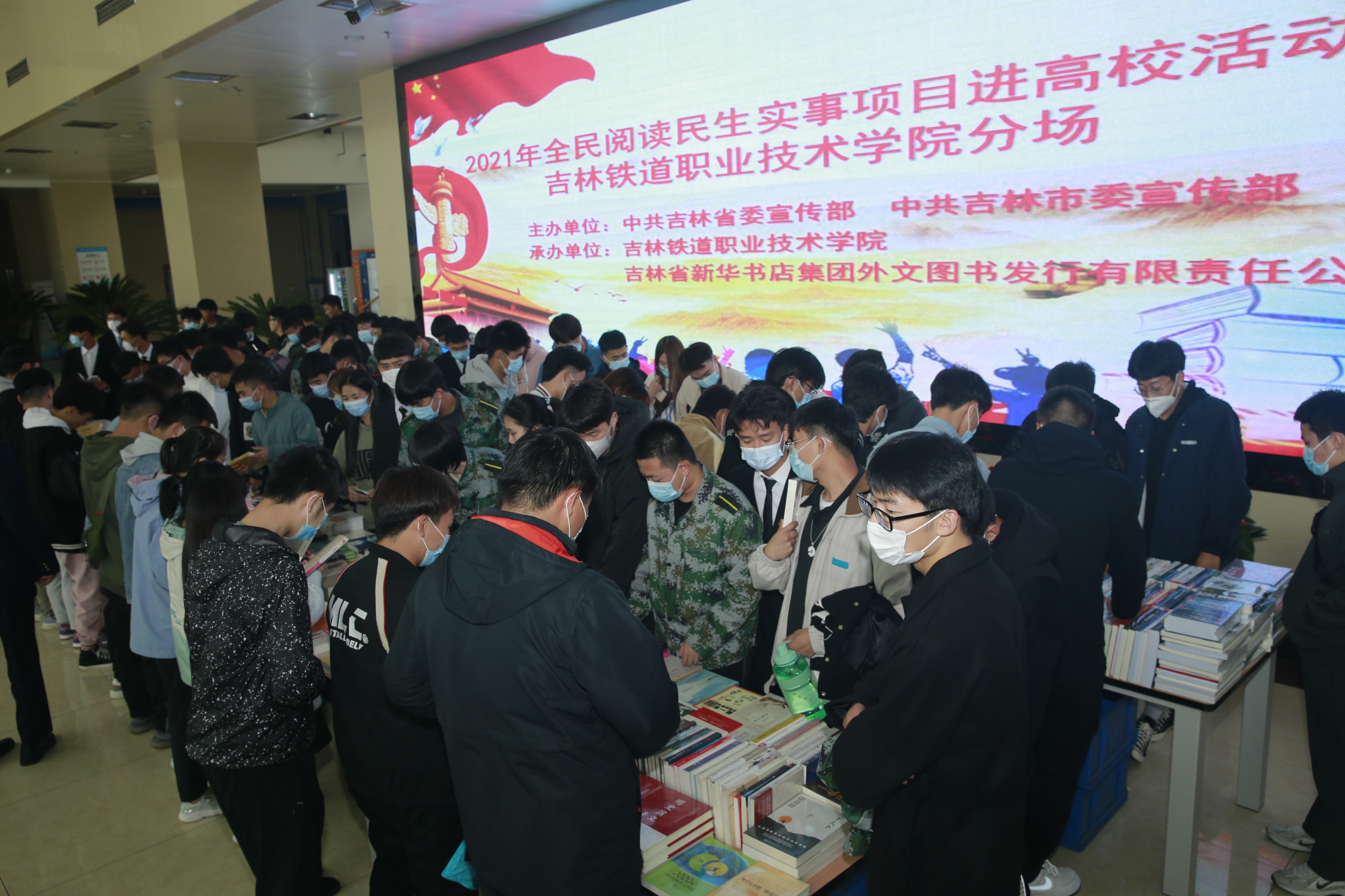 近日,由中共吉林省委宣传部、中共吉林市委宣传部主办,吉林铁道职业技术学院与吉林省新华书店集团外文图书发行有限责任公司承办的“你选书,我买单”2021年全民阅读民生实事项目进高校活动在学校图书馆报告厅顺利举行。吉林省新华书店集团外文图书发行有限责任公司副总经理于文龙,学校宣传统战部、学生工作部、团委、图书馆部门负责人及学生代表参加本次活动。