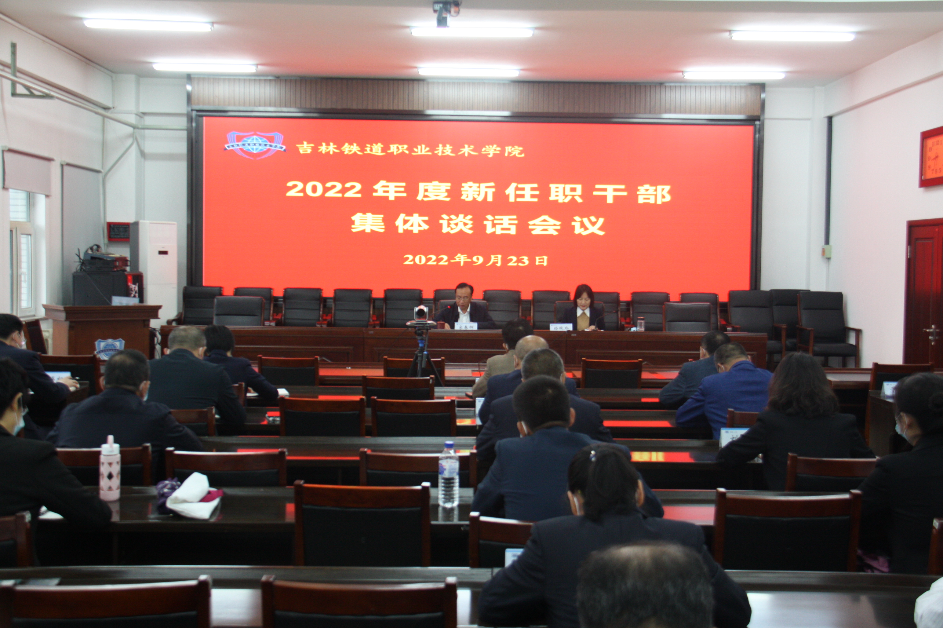 为进一步贯彻党的组织路线,落实习近平总书记关于“努力造就一支高素质干部队伍”的总要求;压紧压实党委主体责任、纪委监督责任,督促新任职干部率先垂范、勤政廉政,牢记“立德树人”根本任务,以崭新业绩和实际行动迎接党的二十大胜利召开,学校党委于2022年9月23日上午召开2022年度新任职干部集体谈话会议。