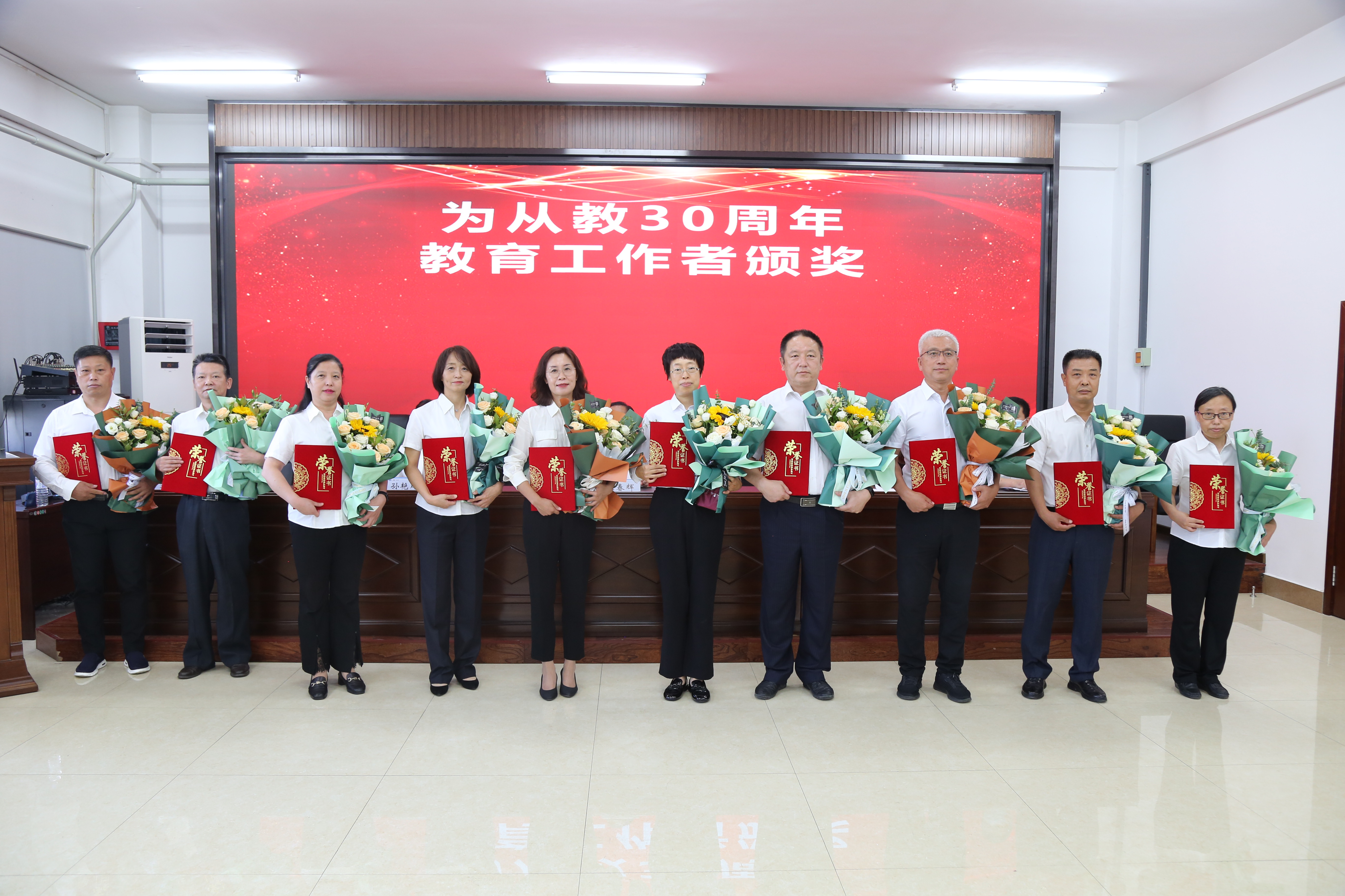 曹炳志在讲话中代表学校,向辛勤工作、无私奉献的全校教师、广大教职工、离退休老教师,致以节日的问候!向受到表彰的先进集体和优秀个人表示热烈祝贺!特别向将人生芳华献给党的教育事业、为学校发展辛勤工作30年的教育工作者,致以崇高的敬意!