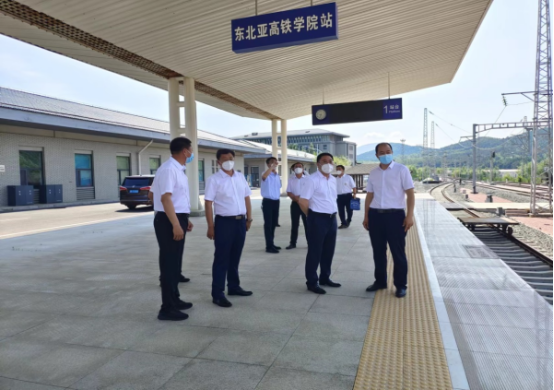 调研团队一行依次实地参观了我校的火车头广场、铁道综合演练实训基地、教学融合指挥中心、步行体验了我校师生健身步道、参观了学校二期建设场地、西湖、北环道、大学生活动中心。参观结束后,大家在行政办公楼第二会议室进行了座谈。