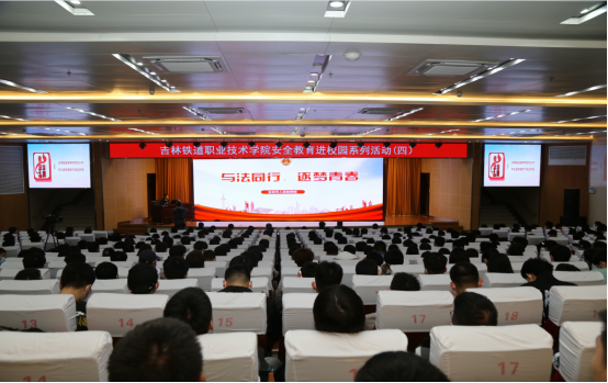 为预防青少年参与违法犯罪,提升学生的法律意识,切实增强学生安全防范意识和自我保护能力,4月14日下午,在图书馆报告厅组织开展第四期“安全教育进校园系列活动”。永吉县人民检察院第一检察部检察官曲亮亮、周诚瑾,学校安全保卫处处长刘锡权、安全保卫处副处长张强,治安科科长吴宇飞以及全校学工干部和学生代表参加讲座,讲座由学生处副处长李爽主持。