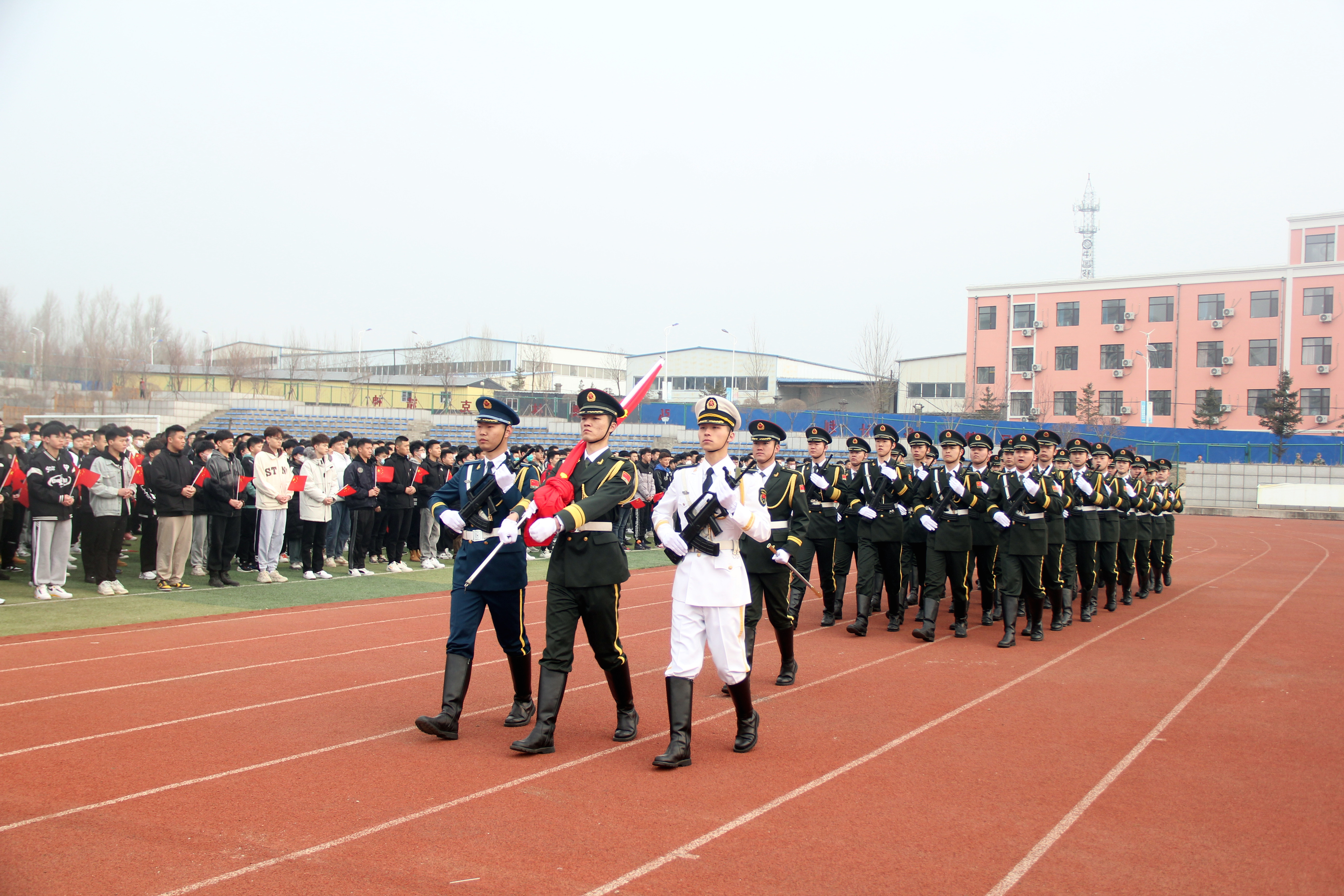 云开“疫”散终有时,扬帆起航学子归。为进一步激发全校师生的历史责任感、使命感,激励全校师生以焕然一新的面貌、昂扬奋进的姿态,开启新学年、新征程。3月6日新学期第一天,学校举行“学习二十大·永远跟党走·奋进新征程暨开学第一课”主题升国旗仪式,全校师生万余人参加活动。党委书记宋春辉,党委副书记、校长曹炳志,分别为同学们讲授“开学第一课”,活动由副校长李欣主持。