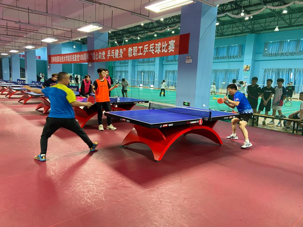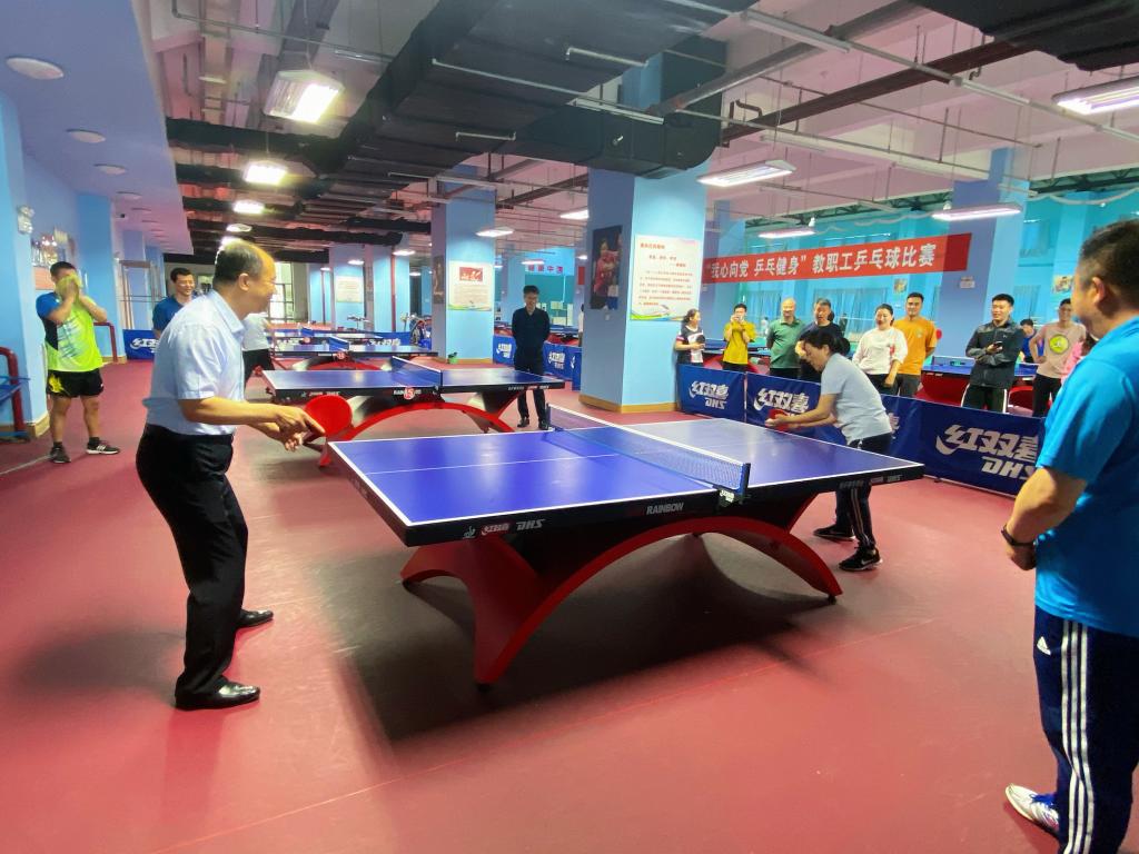 2023年6月14日下午,由学校工会和体育教学部共同组织的教职工乒乓球比赛在学校体育馆举行。比赛设男子单打、女子单打两个项目,在学校领导的带头下,教职工们踊跃参加了比赛。