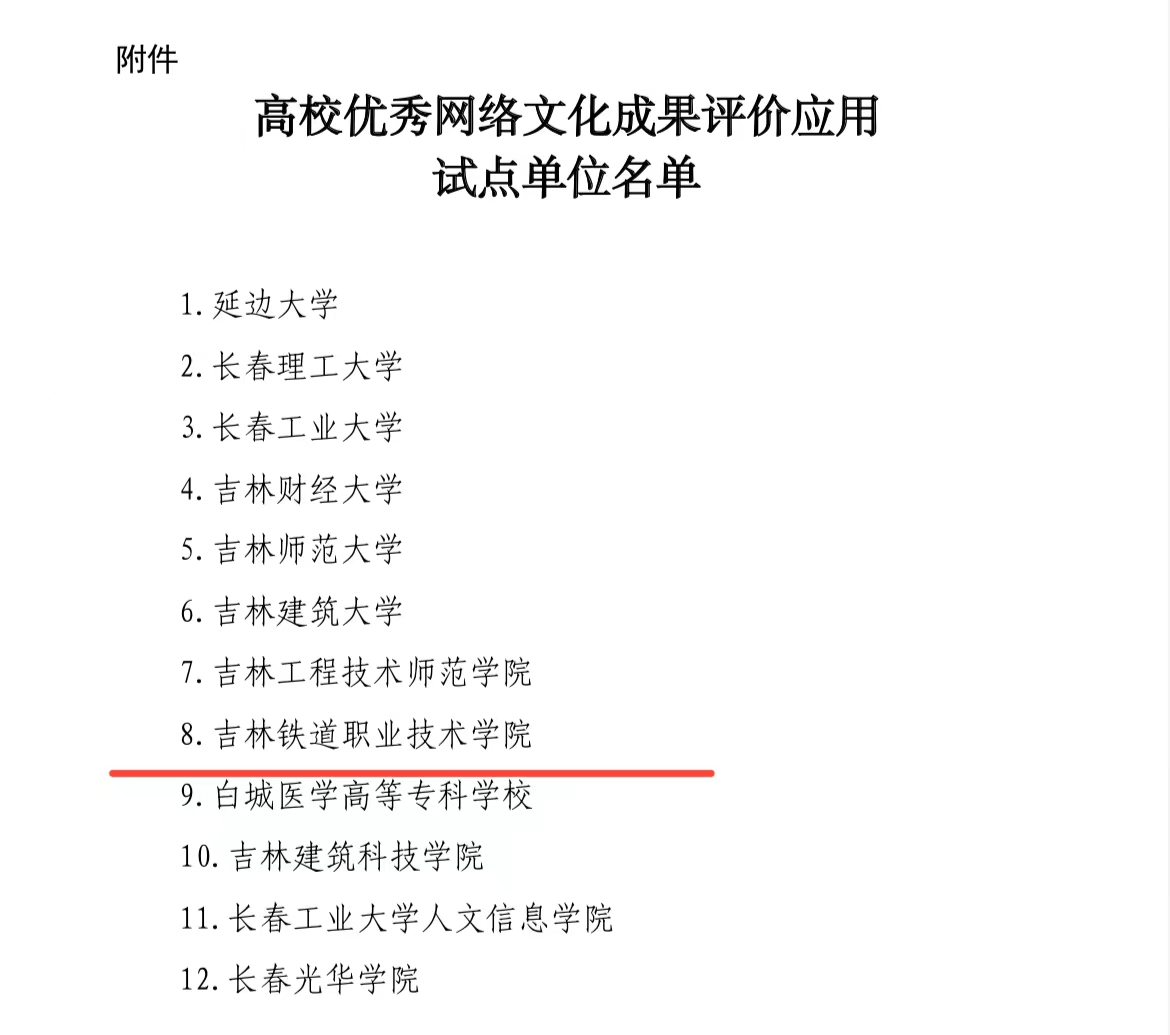 近日,中共吉林省委教育工作委员会印发了《关于开展高校优秀网络文化成果评价应用试点工作的通知》,我校获评首批吉林省高校优秀网络文化成果评价应用试点单位。