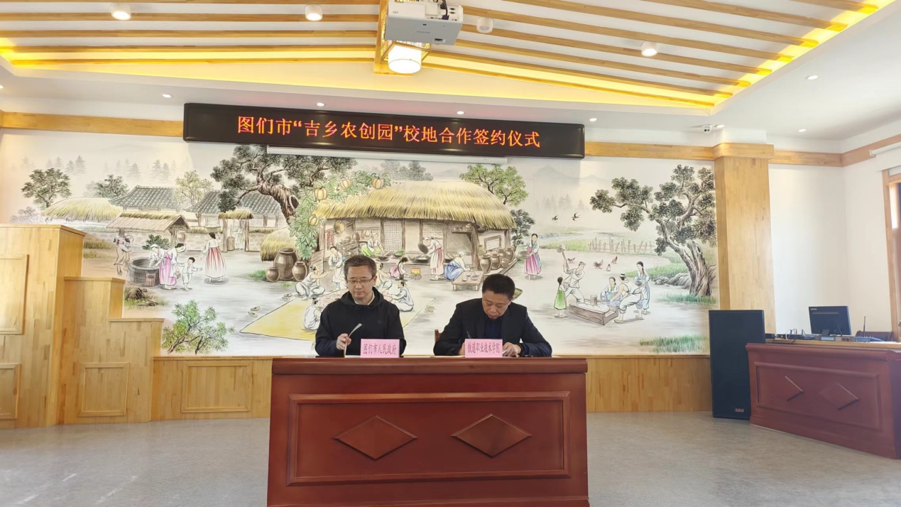 5月22日上午,按照全省乡村建设“吉乡农创园”的总体部署,学校副校长李欣带队赴图们市石岘镇水南村开展乡村振兴实地调研,参加“吉乡农创园”校地对接签约仪式。学校后勤党总支书记付德才,乡村振兴办周环宇、甘丰瑞,图们市委副书记肖志刚,市政府副市长杨文一,乡村振兴局局长闫博、副局长朴辉星,石岘镇党委书记刘恩豪,水南村村书记金国星,以及图们市农业农村局、教育局、文广旅局的同志参加活动。